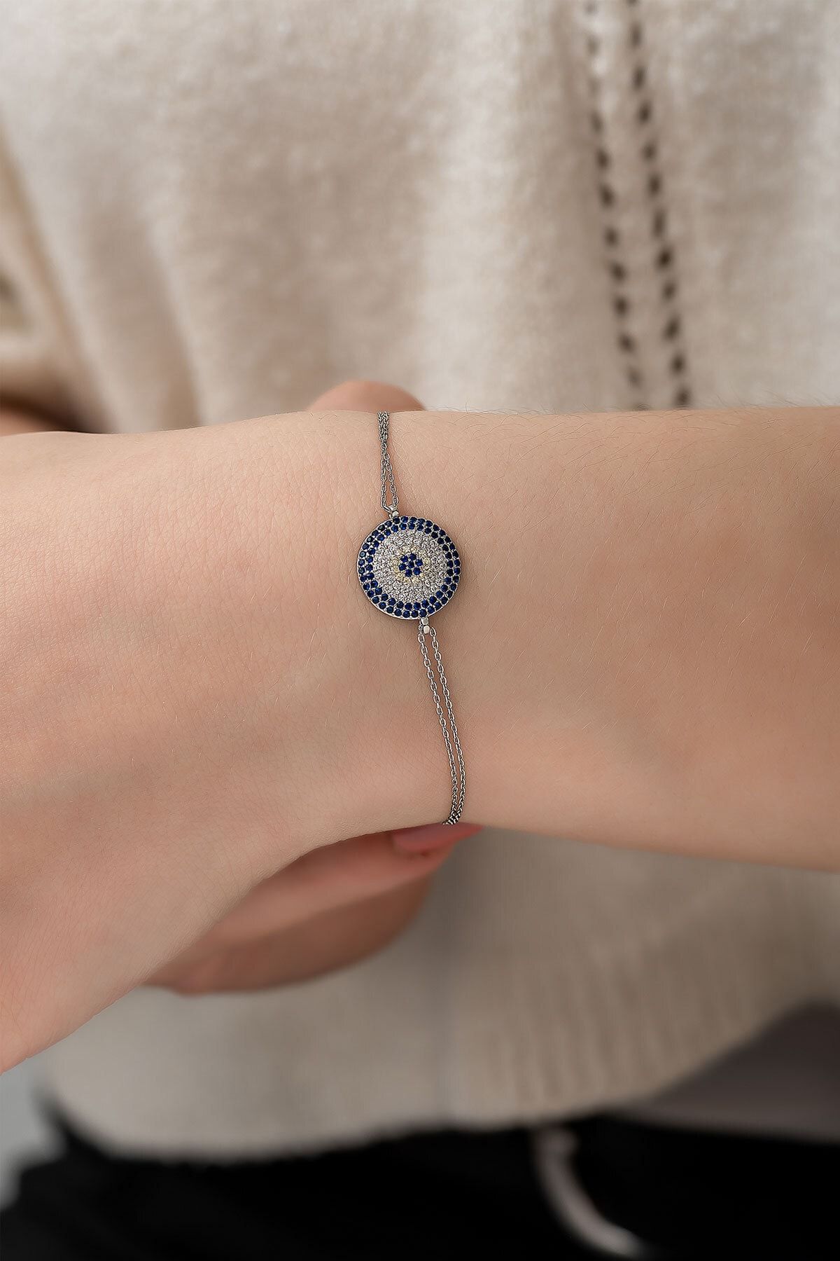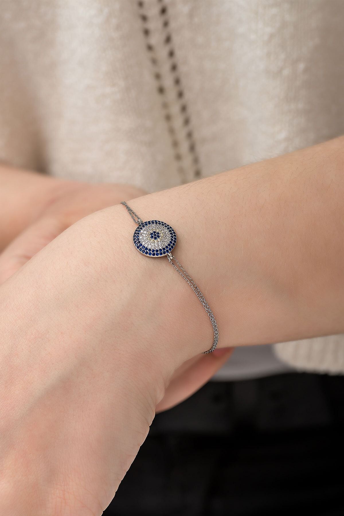 925 Ayar Rodyum Kaplama Gümüş Nazar BileklikMaden : 925 Ayar gümüş.Kaplama : Rodyum.Renk : Gümüş.Taş:ZirkonÜrün ağırlığı : 3.50 Gr ( +-).Bileklik Uzunluğu:18 + 5cm.Teslimat :Ürün hediye kutusunda gönderilecektir.