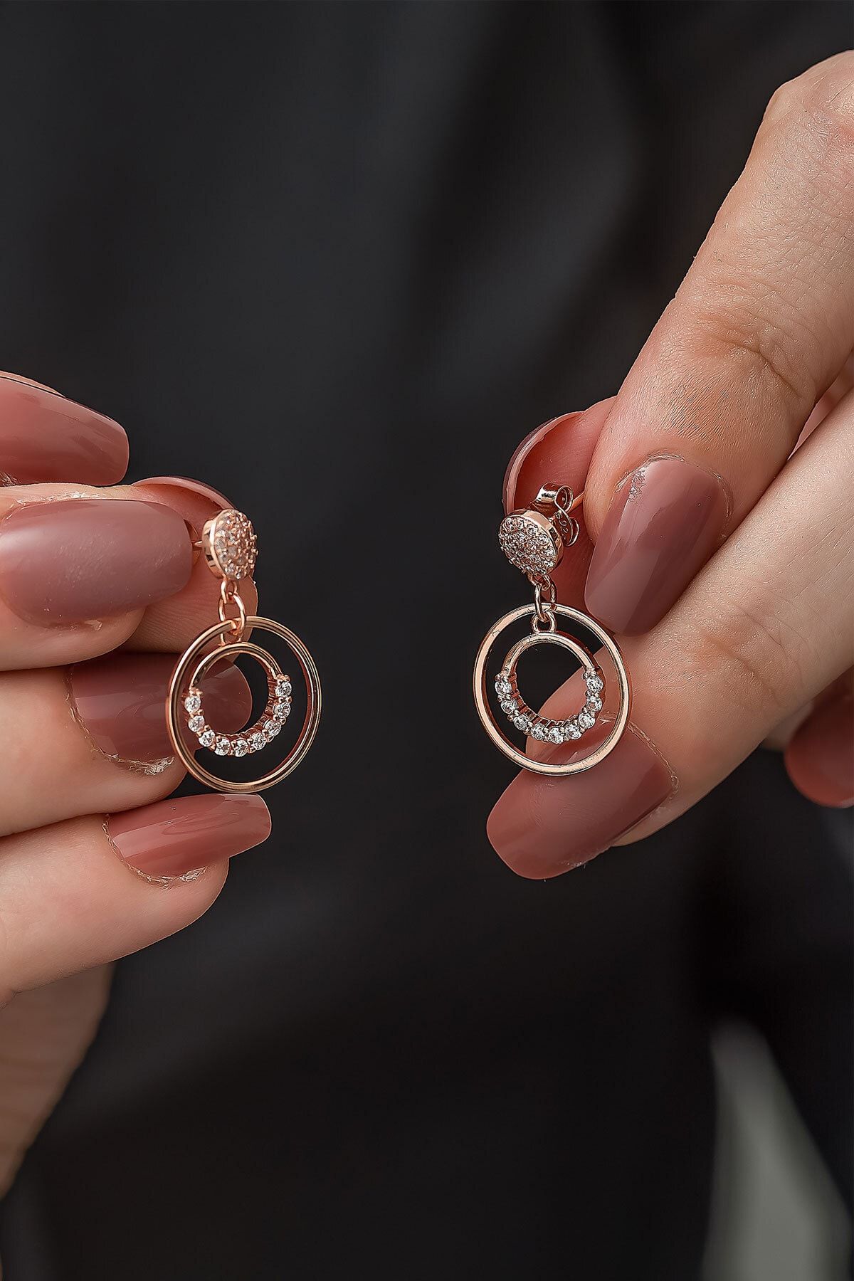 Dört Baget Taş Sallantılı Nano Zirkon Küpe Rose Kaplama Gümüş Uvps300128
