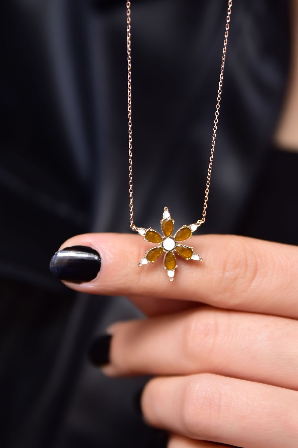 Maden : 925 Ayar Gümüş. Kaplama: Rose Altın. Taş: Zirkon, Mine. En x Boy: 1,5 x 2,0 cm. Ürün Ağırlığı : 2,15 Gr ( +-). Gümüş ve değerli taşlar nedeniyle belirtilen ortalama ürün ağırlığında ± %10 sapma olabilmektedir. Zincir Uzunluğu: 42 cm. Teslimat: Ürün ahşap hediye kutusunda gönderilecektir. Kullanım: Parfüm, dezenfektan, çamaşır suyu gibi kimyasallardan uzak tutunuz.