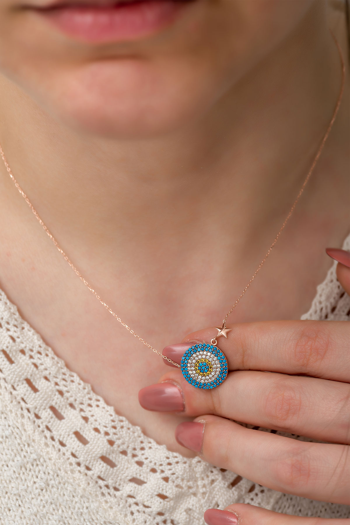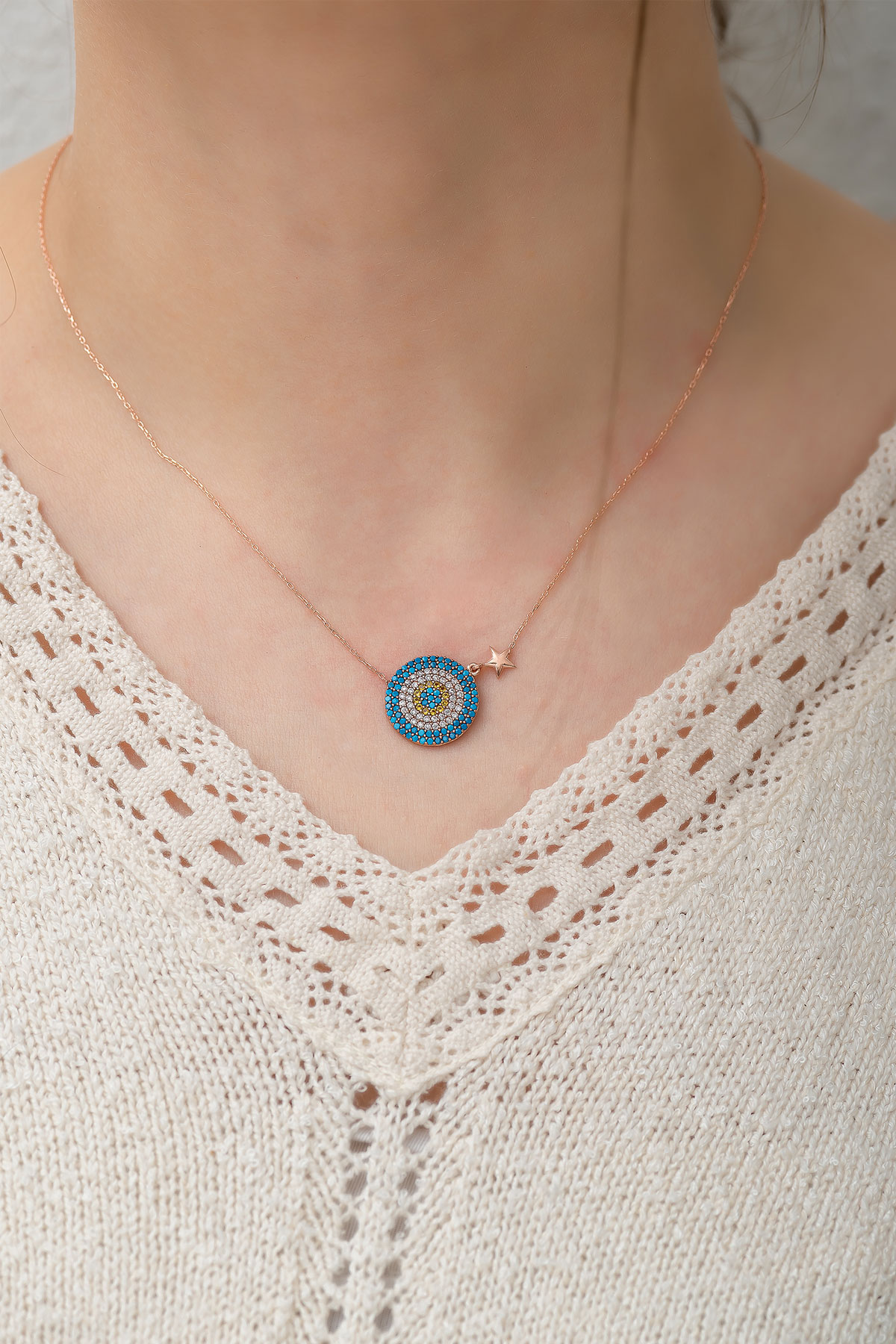 925 Ayar Rose Altın Yıldızlı Gümüş Nazar Kolye