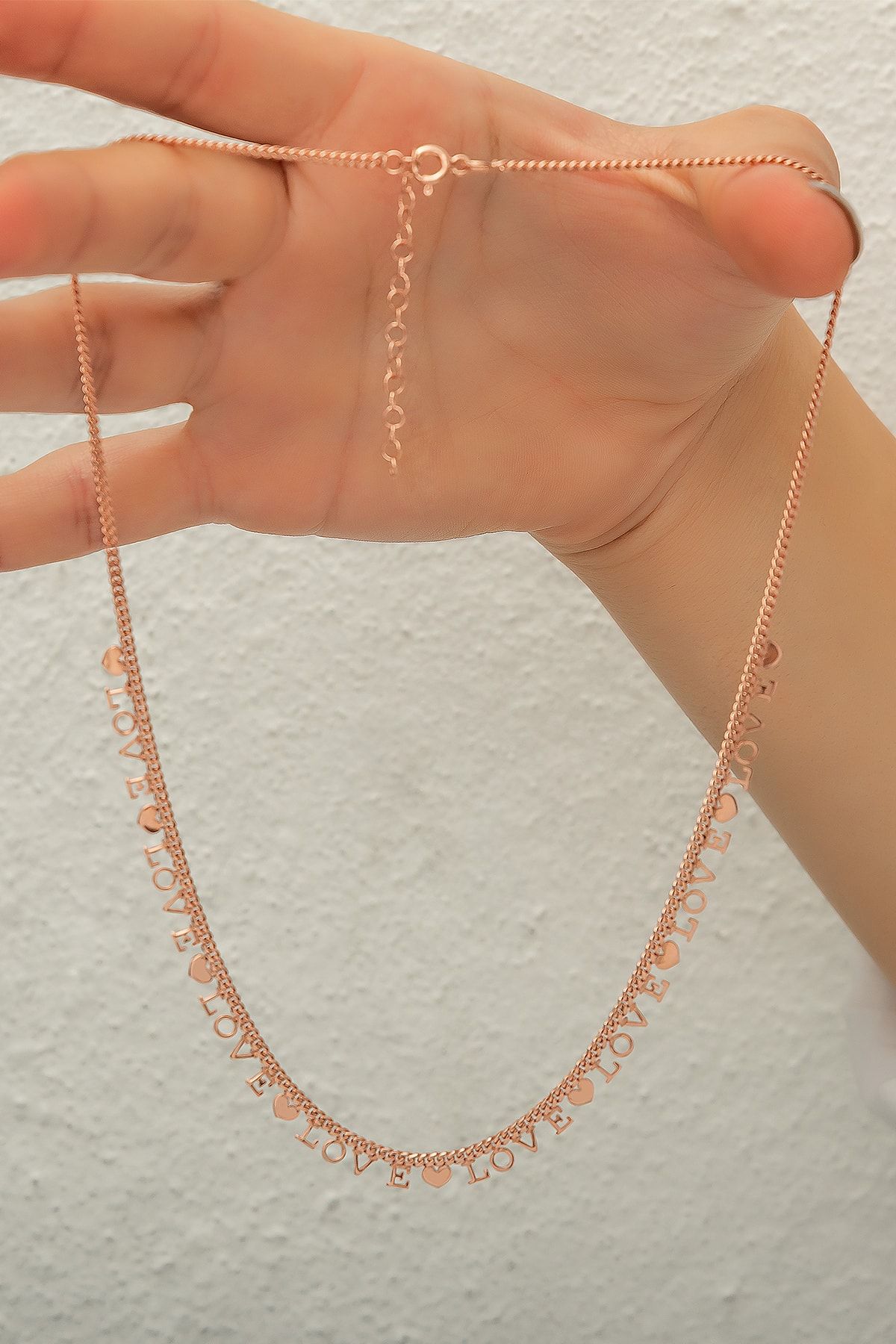 925 Ayar Sıralı Love Yazılı Gümüş Aşk KolyeMaden : 925 Ayar Gümüş Kaplama: Rose Altın.Renk : Rose Altın.Zincir uzunluğu : 43 cm.Ürün ağırlığı : 6,50. Gr (+-).Teslimat: Ürün ahşap hediye kutusunda gönderilecektir.
