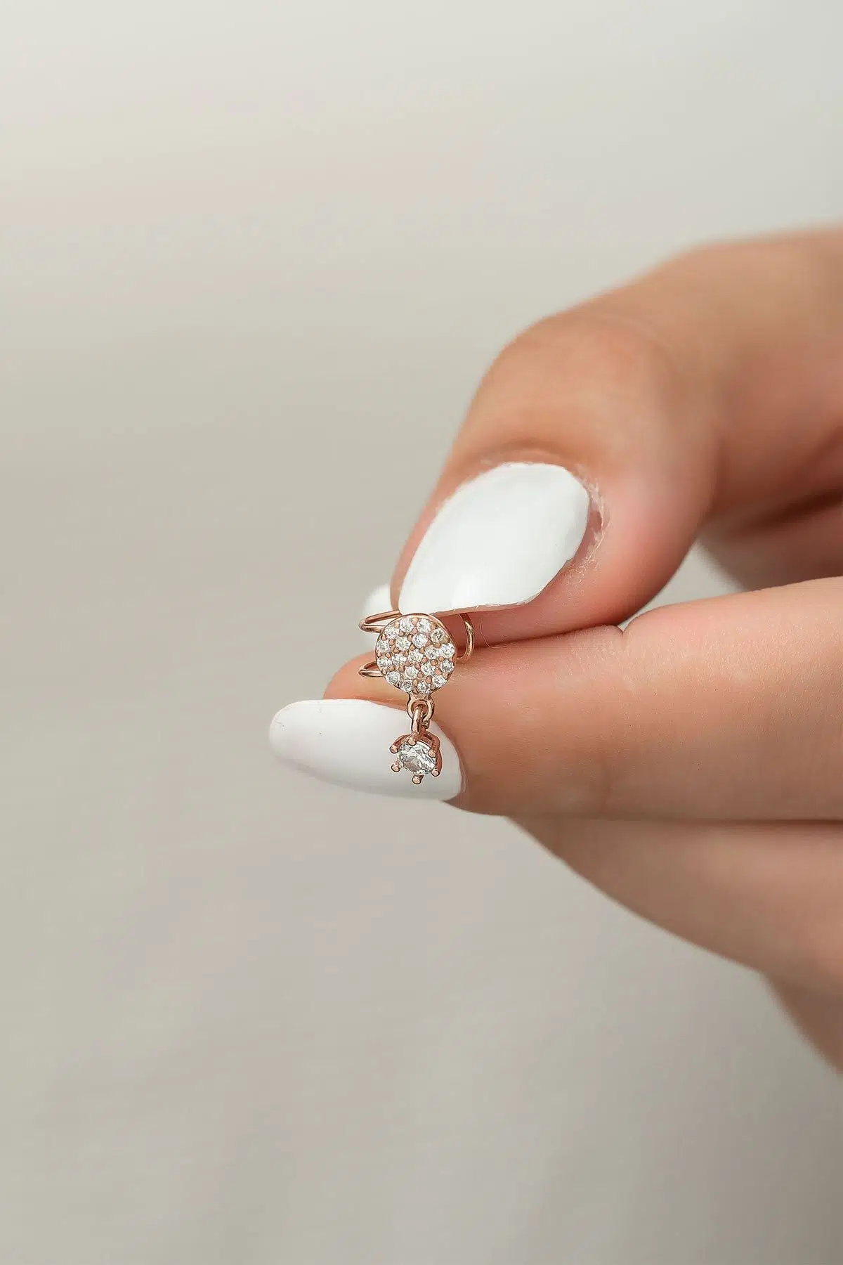 925 Ayar Gümüş Rose Kaplama Maça Kıkırdak Küpe