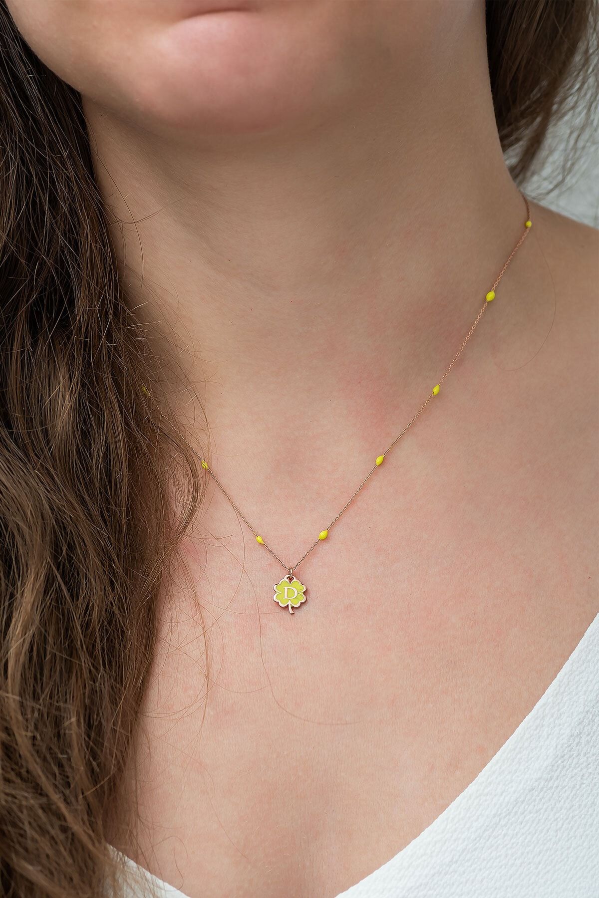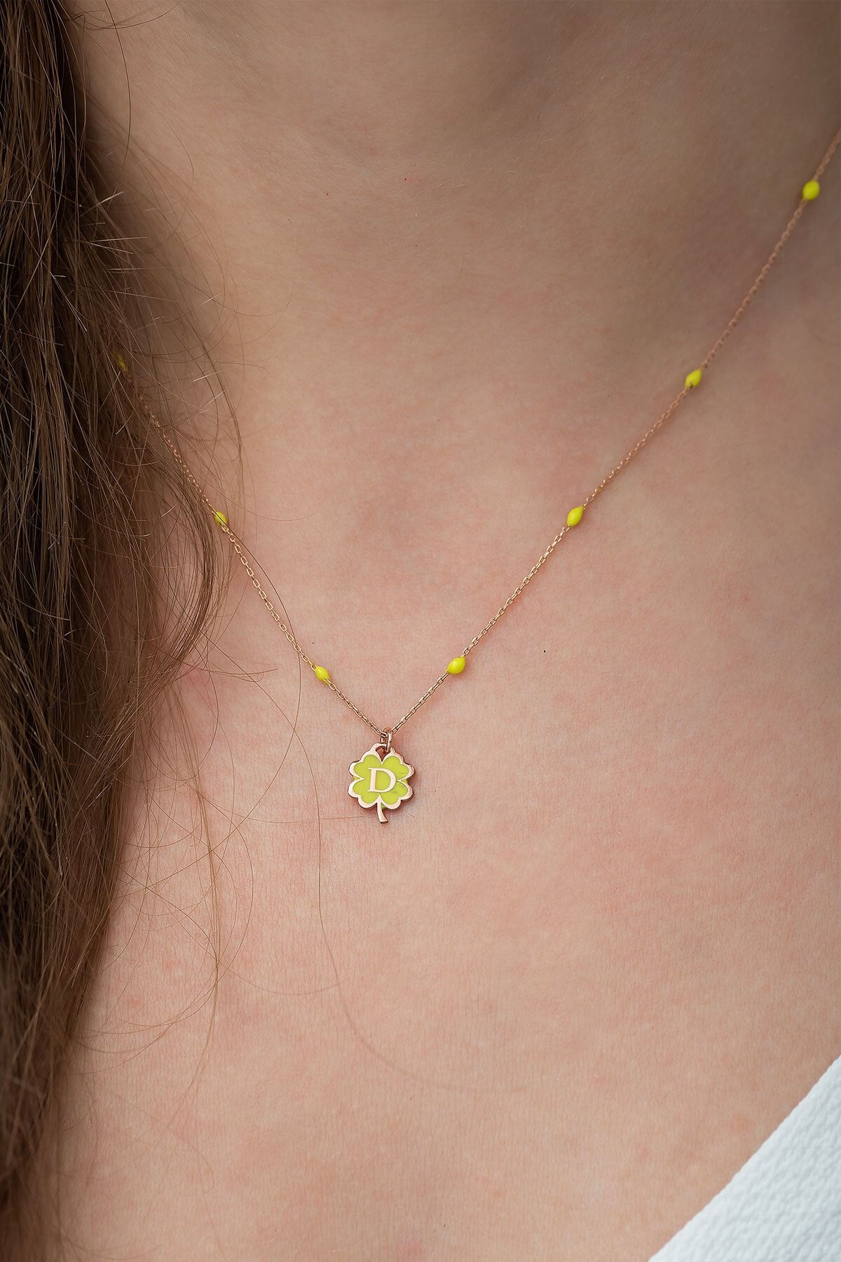 925 Ayar Yonca Modeli Sarı Nano Lazer Mineli Gümüş D Harf Kolye.Maden : 925 Ayar Gümüş.Kaplama: Rose Altın. .Renk : Altın.Taş: Nano Lazer Mine.Zincir Uzunluğu: 42 cm.Ürün Ağırlığı : 2,50 Gr ( +-). Gümüş ve değerli taşlar nedeniyle belirtilen ortalama ürün ağırlığında ± %5 sapma olabilmektedir.Teslimat: Ürün ahşap hediye kutusunda gönderilecektir.