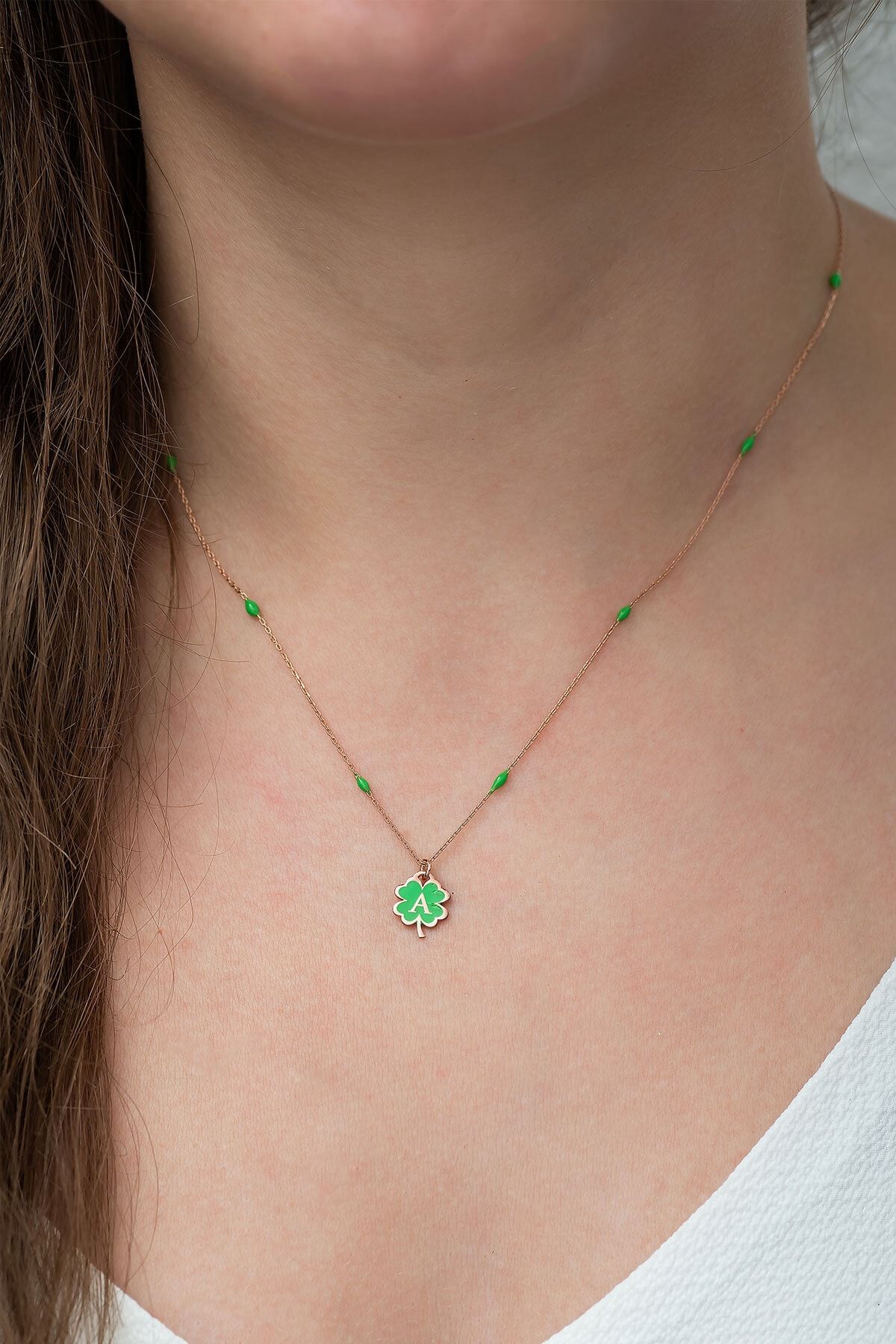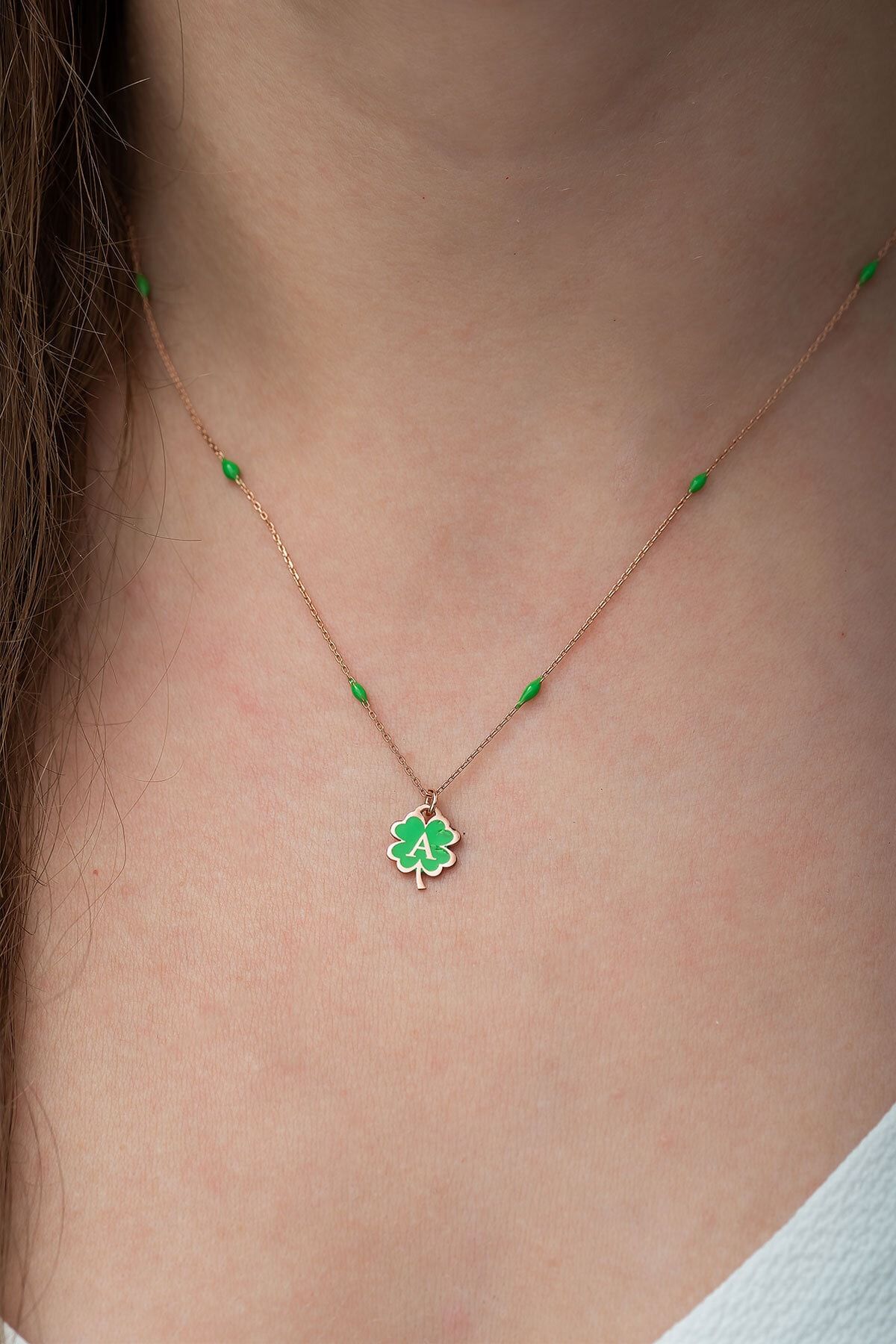925 Ayar Yonca Modeli Yeşil Nano Lazer Mineli Gümüş A Harf Kolye.Maden : 925 Ayar Gümüş.Kaplama: Rose Altın. .Renk : Altın.Taş: Nano Lazer Mine.Zincir Uzunluğu: 42 cm.Ürün Ağırlığı : 2,50 Gr ( +-). Gümüş ve değerli taşlar nedeniyle belirtilen ortalama ürün ağırlığında ± %5 sapma olabilmektedir.Teslimat: Ürün ahşap hediye kutusunda gönderilecektir.