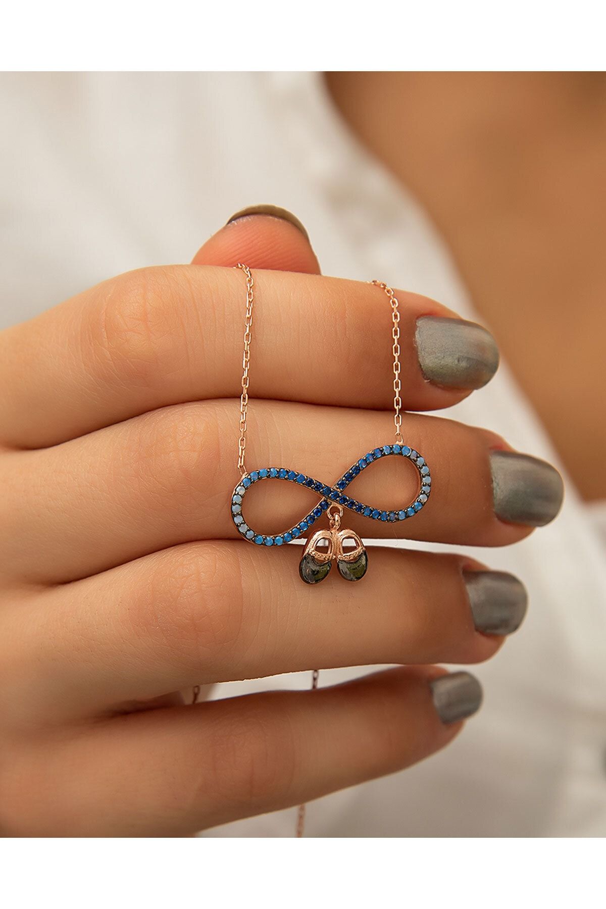 925 Ayar Zirkon Taşlı Bebek Ayağı Sonsuzluk Gümüş KolyeMaden : 925 Ayar Gümüş.Kaplama: Rose Altın.Renk : Altın.Taş: Zirkon.Zincir Uzunluğu: 42 cm.Ürün Ağırlığı : 2,50 Gr ( +-). Gümüş ve değerli taşlar nedeniyle belirtilen ortalama ürün ağırlığında ± %5 sapma olabilmektedir.Teslimat: Ürün ahşap hediye kutusunda gönderilecektir.