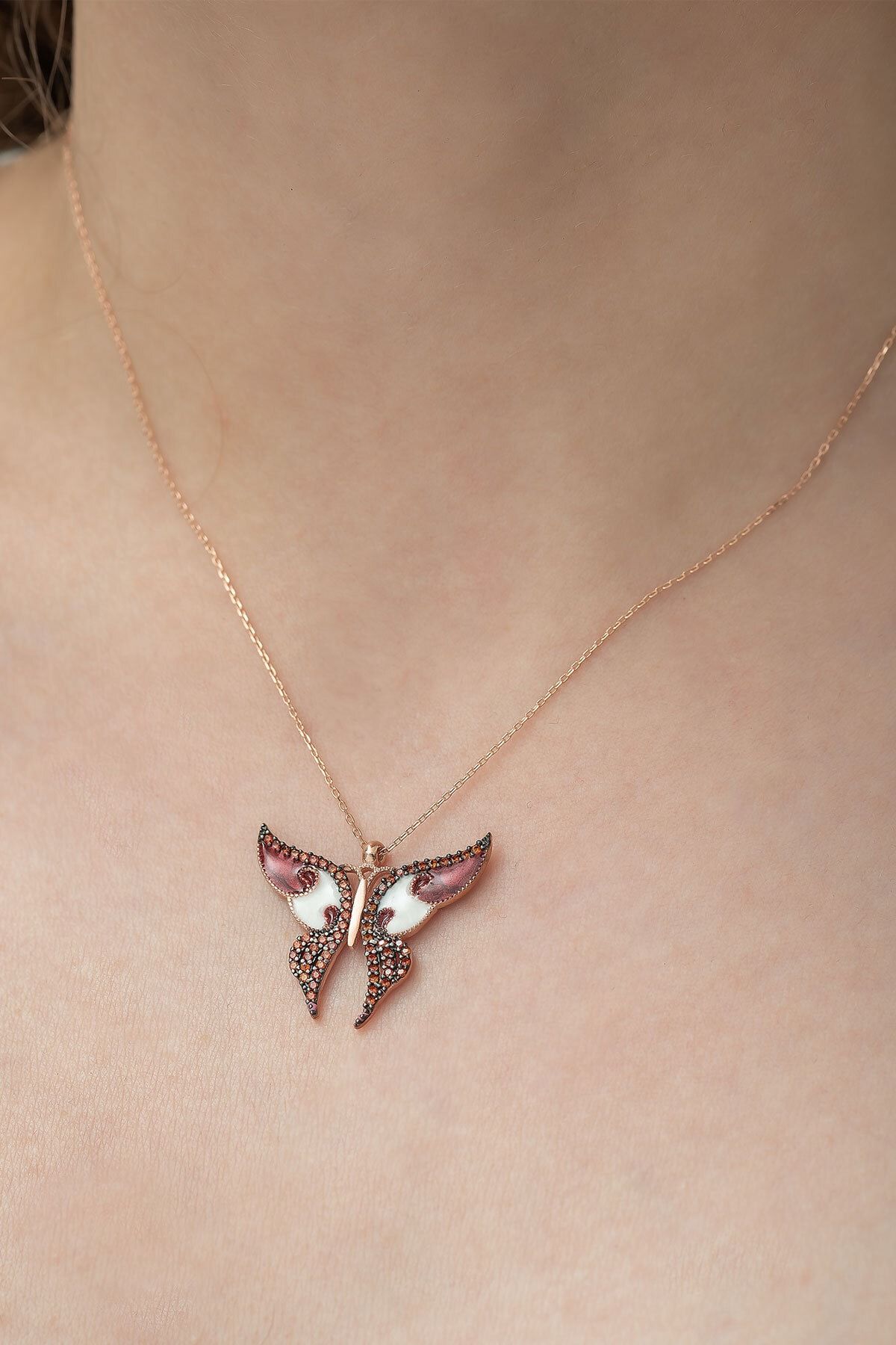 925 Ayar Zirkon Taşlı Gümüş Kelebek Kolye