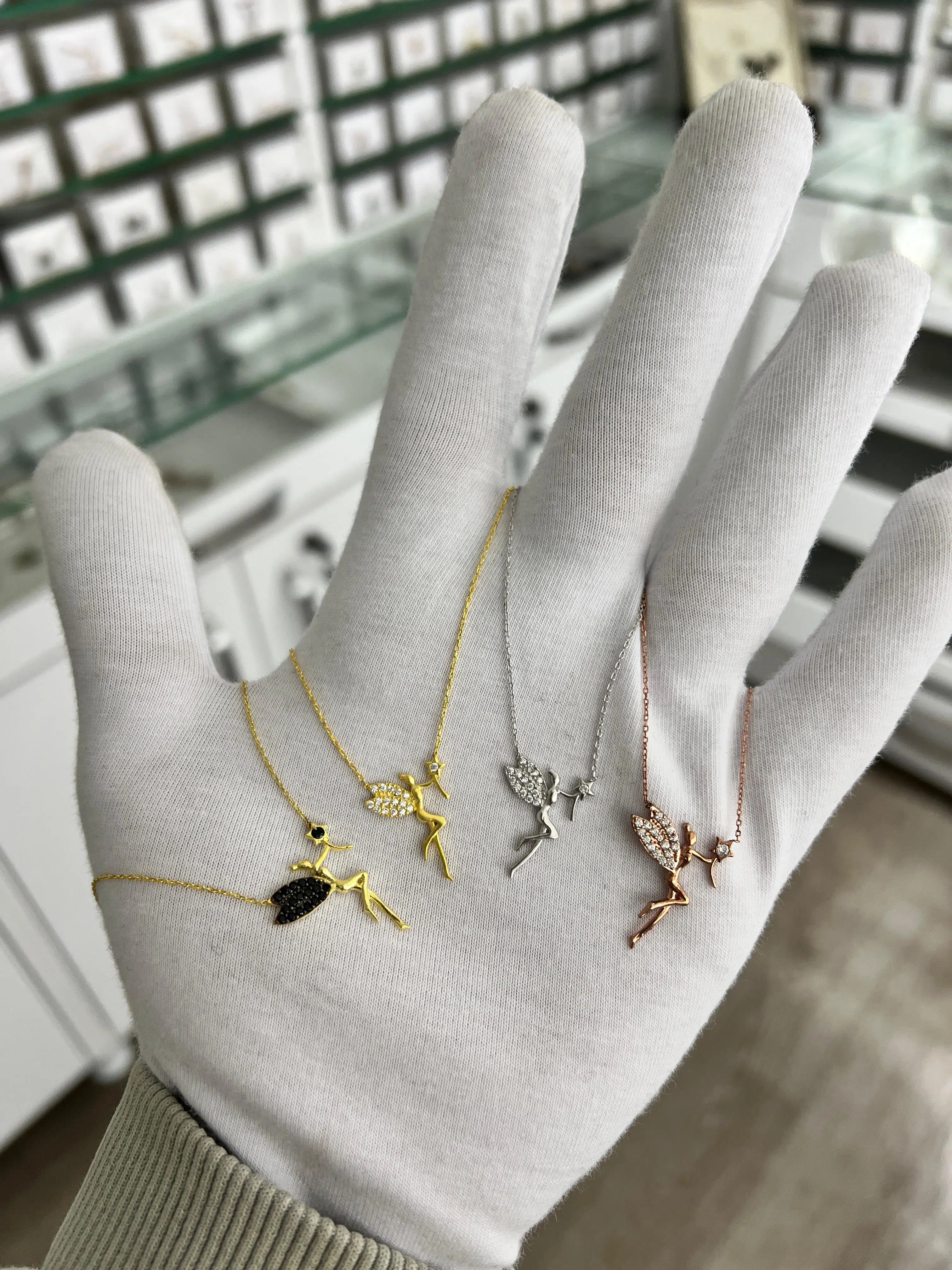 925 Ayar Zirkon Taşlı Gümüş Melek KolyeMaden : 925 Ayar Gümüş.Renk : Altın.Taş: Zirkon.Zincir Uzunluğu: 42 cm.Ürün Ağırlığı : 3,00 Gr ( +-). Gümüş ve değerli taşlar nedeniyle belirtilen ortalama ürün ağırlığında ± %5 sapma olabilmektedir.Teslimat: Ürün ahşap hediye kutusunda gönderilecektir.