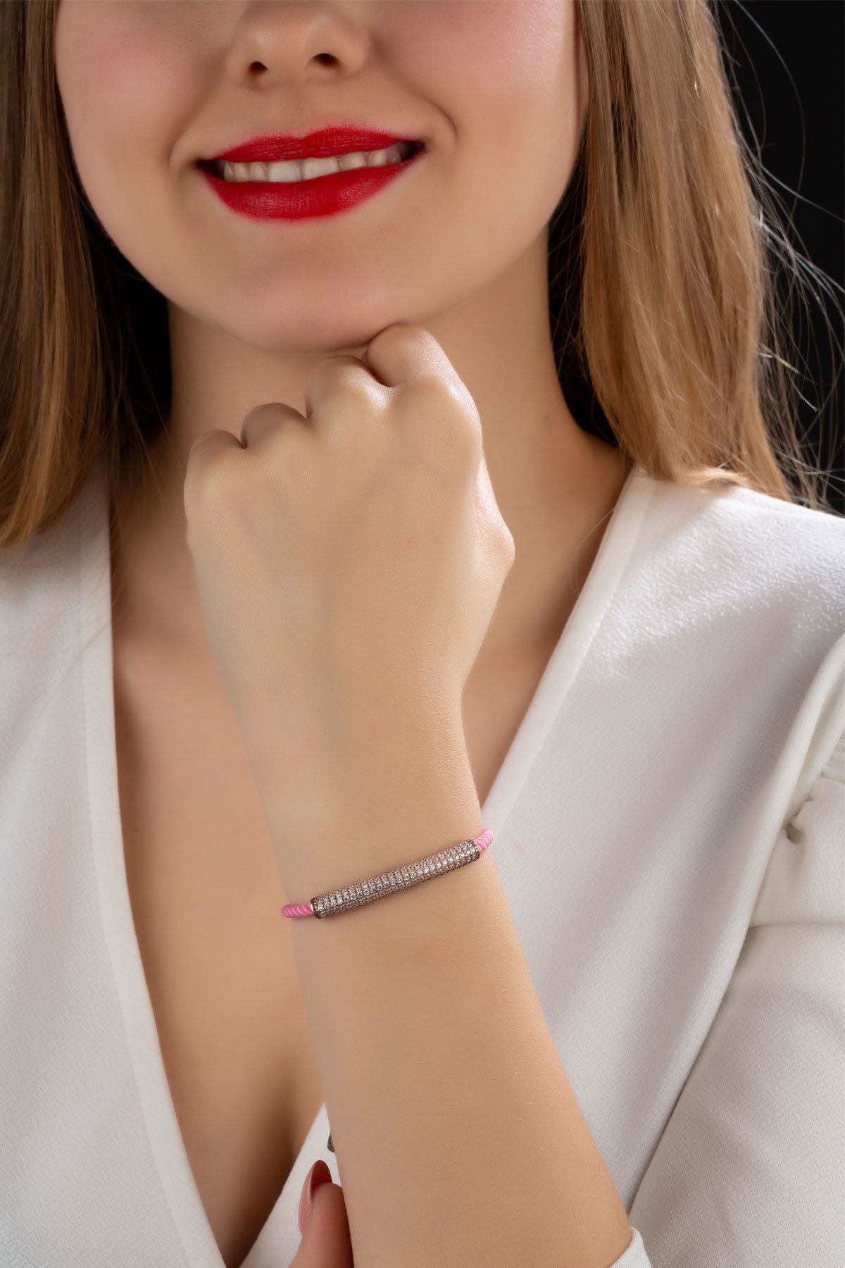 925 Ayar Zirkon Taşlı Makrome İpli Gümüş Bileklik UVPS200144Maden : 925 Ayar gümüş.Değerli Taş : Zirkon.Kaplama : Rose Altın Kaplama.Renk : Rose Altın Kaplama.Bileklik uzunluğu : 19 cm.Ürün ağırlığı :3 Gr (+-).Teslimat: Papatya Silver tarafından Ürün ahşap hediye kutusunda gönderilecektir.