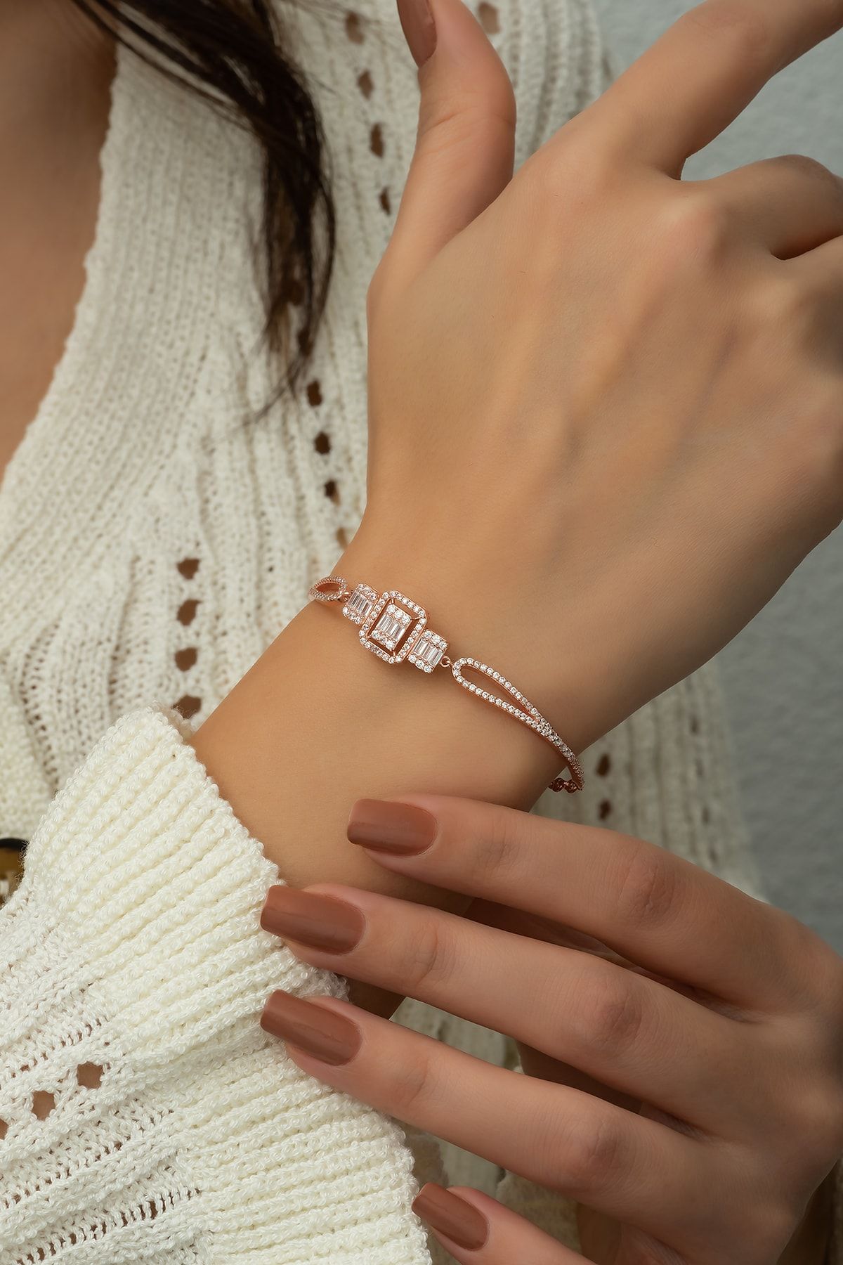 Üç Sıra Nazargöz Tifany Bielklik Rose Altın Kaplama 925 Ayar Gümüş - Uvps200022