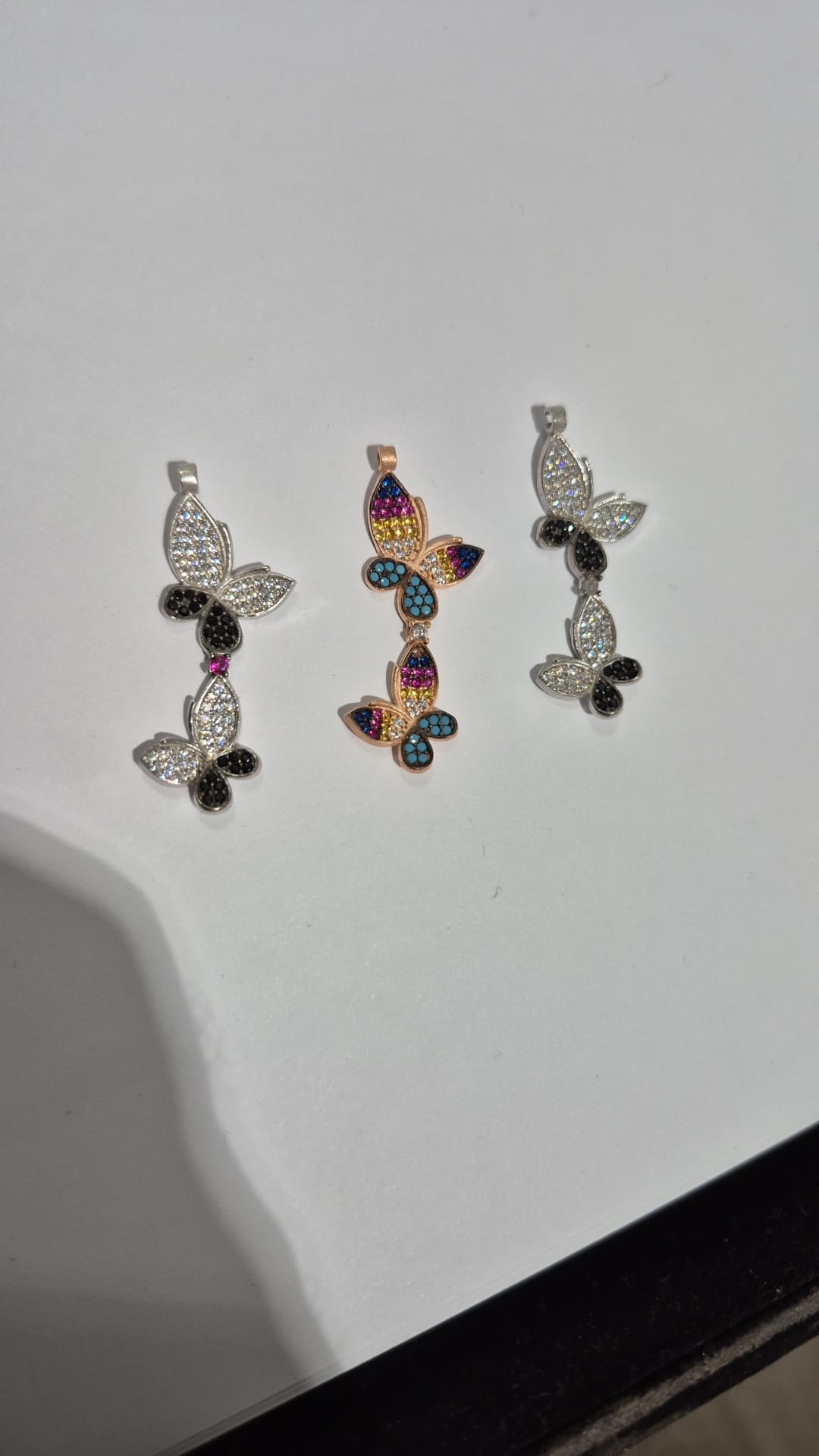 Bahar kelebeği ikili kolye Maden : 925 Ayar gümüş. Kaplama : Rodyum kaplama. Renk : Gümüş, Siyah. Taş : Nano Zirkon taşlı. Zincir uzunluğu : 45 cm. Ürün ağırlığı : 3 Gr (+-). Teslimat: Ürün ahşap hediye kutusunda gönderilecektir.