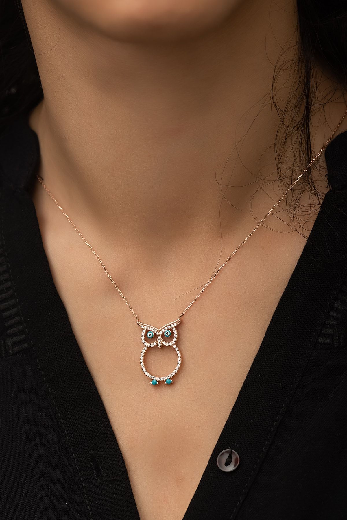 Baykuş Kolye - Nazar Göz Mineli Rose Gold Kaplama 925 Ayar Gümüş - UVPS100186 Maden : 925 Ayar gümüş. Taş : Nano Zirkon Kaplama : Rose altın kaplama. Renk : Altın. Zincir uzunluğu : 43 cm. Ürün ağırlığı : 5.0 Gr (+-). Teslimat : Papatya Silver tarafından ürün kutusunda gönderilecektir. 15 gün iade garantisi.