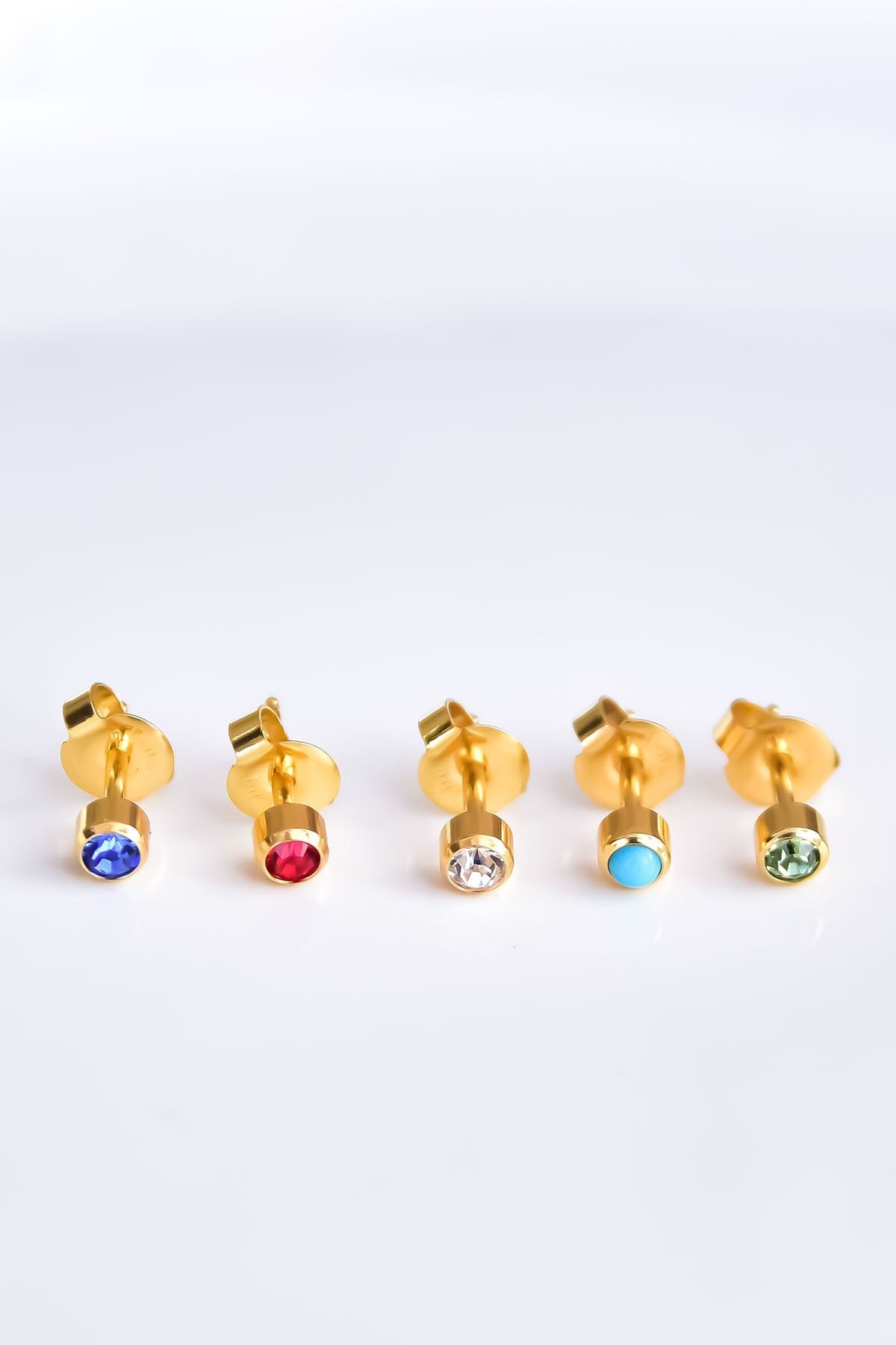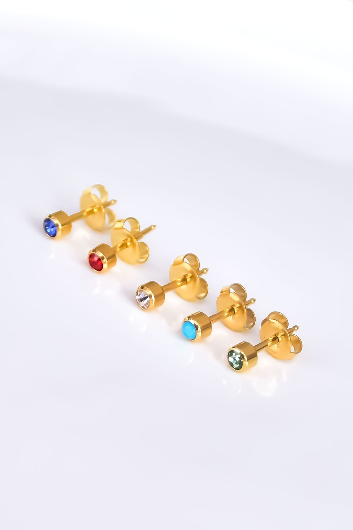 EtiketlerÇelik Gold Kaplama Cerrahi Tektaş Çivili 5'li Kombin Küpe Model1