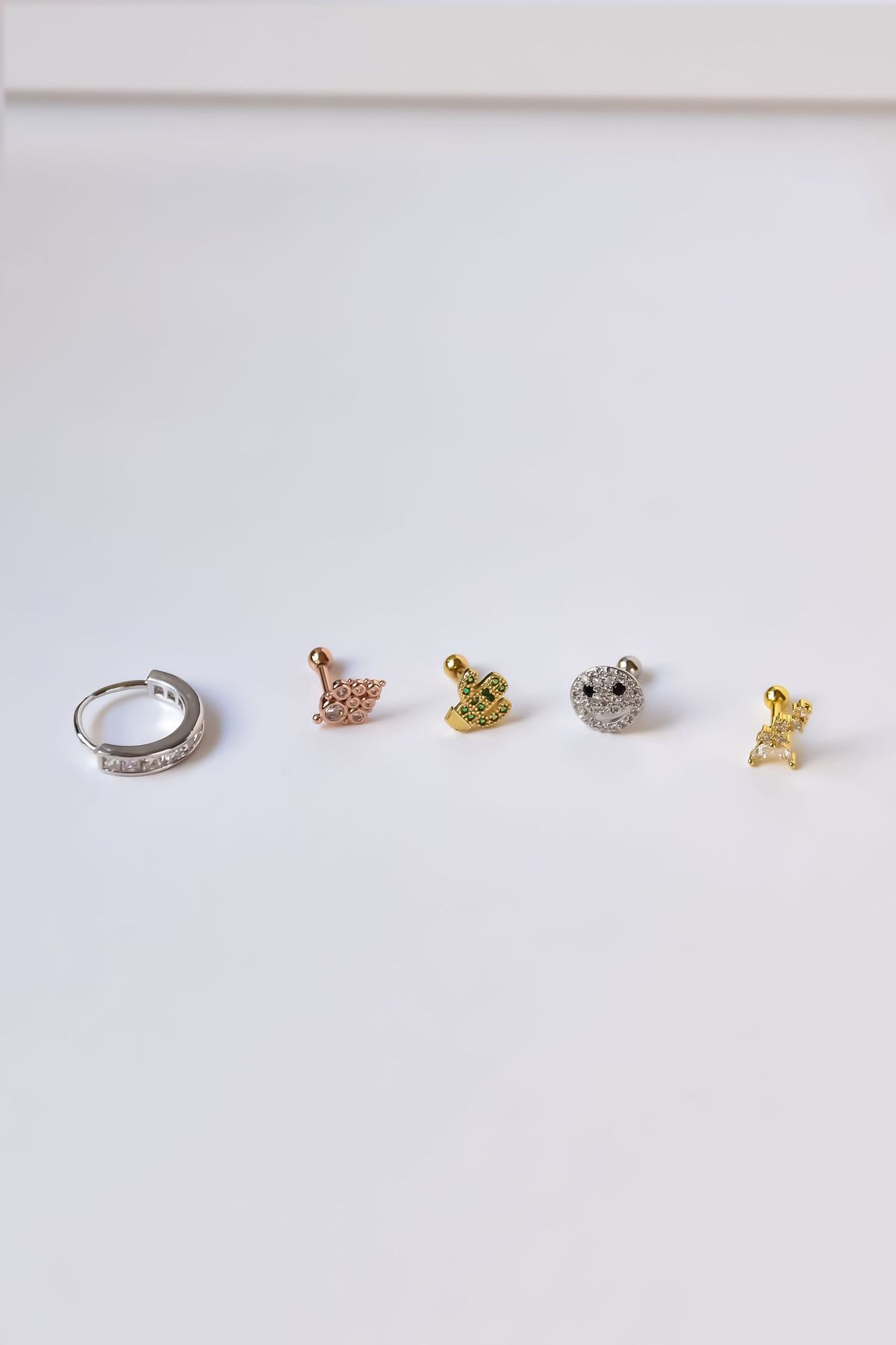 Çelik Gold-Rodyum Kaplama Çelik Tragus 5`li Küpe Kombin2