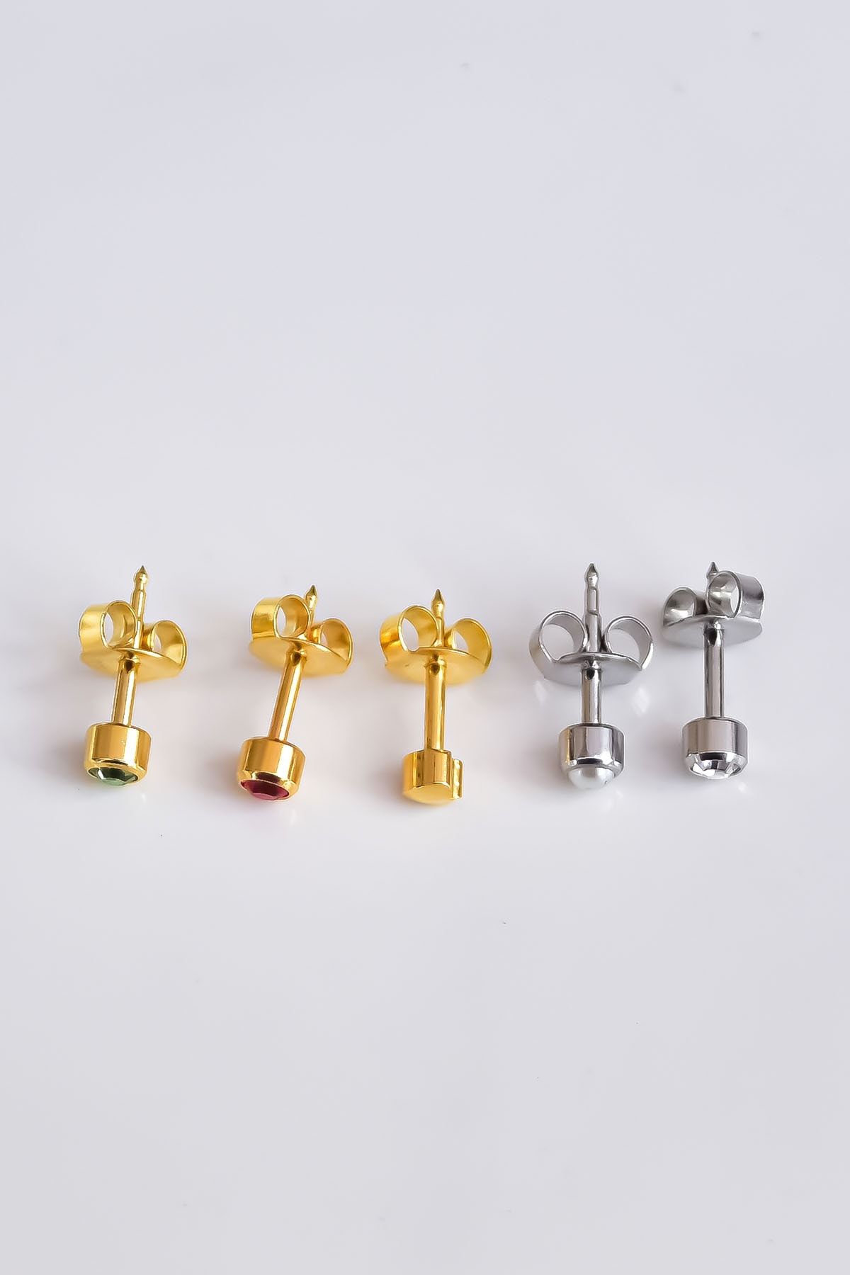 Çelik Gold-rodyum Kaplama Cerrahi Tektaş Çivili 5`li Kombin Küpe Model3