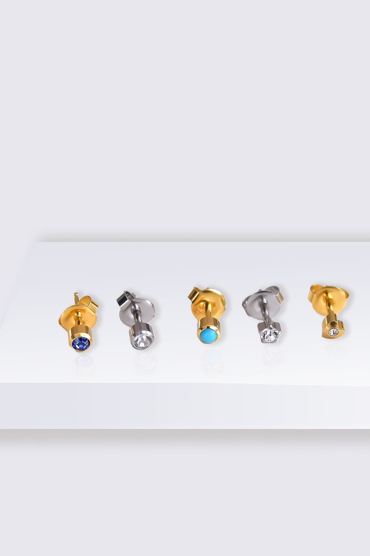 925 Ayar Gümüş Gold Kaplama Zirkon Taşlı Üçlü Iç Içe Geçme Halka Küpe