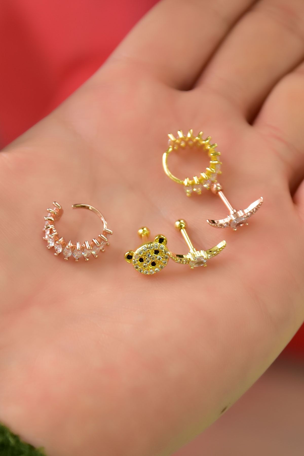 EtiketlerÇelik Üç Renkli 5'li Kombinli Tragus Küpe Model17