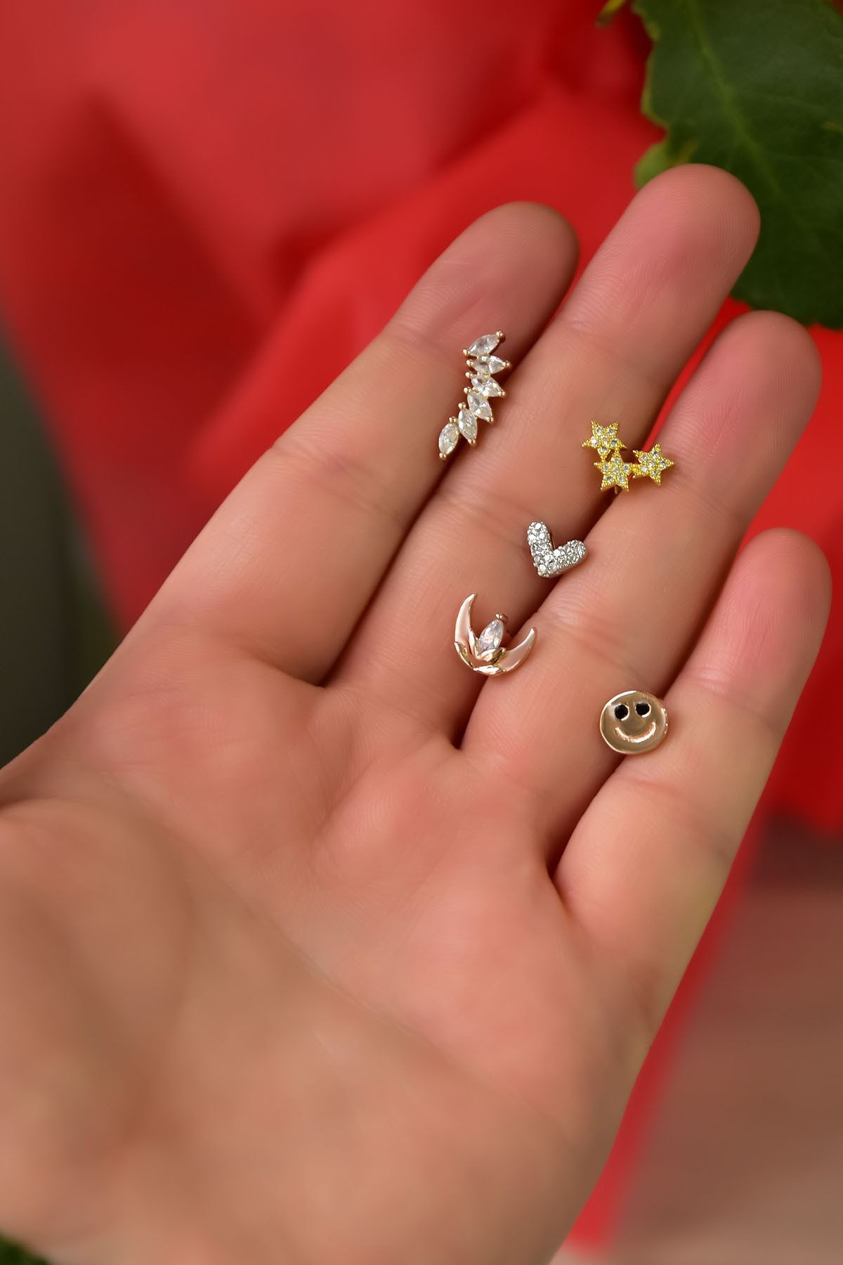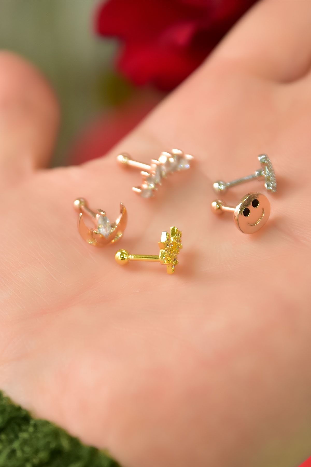 EtiketlerÇelik Üç Renkli 5'li Kombinli Tragus Küpe Model2