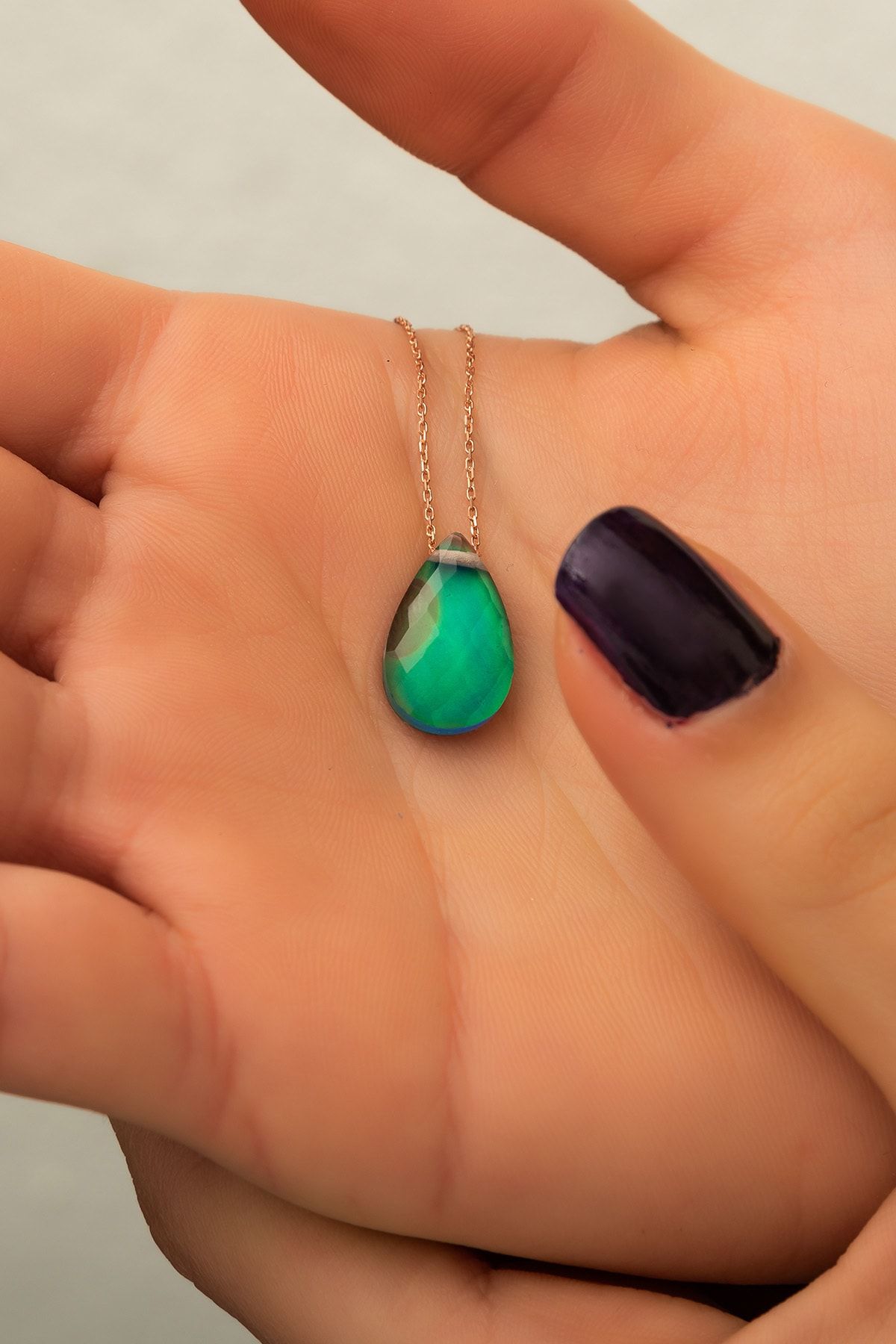 Histaşı Kolye. Vucut Isısına Göre Renk Değiştiren Doğal Taşlı Rose Altın Kaplama 925 Ayar Gümüş Zincir Kolye Maden : 925 Ayar gümüş. Kaplama : Rose altın kaplama. Renk : Rose altın. Taş : Doğal Taş. Zincir uzunluğu : 45 cm. Ürün ağırlığı : 2.30 Gr (+-). Teslimat: Ürün ahşap hediye kutusunda gönderilecektir. Firmamız (İKO) İstanbul Kuyumcular Odasına Kayıtlıdır.