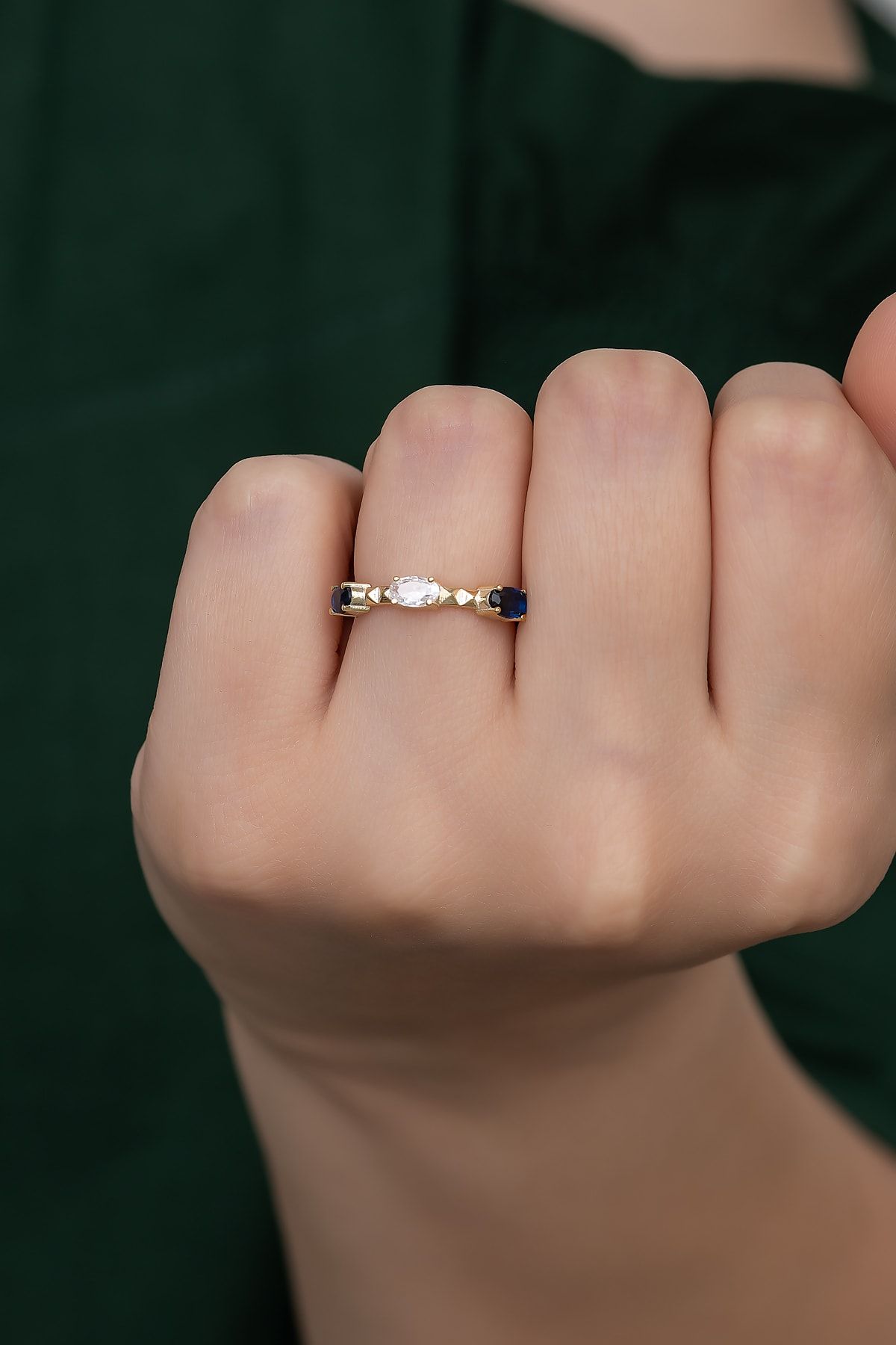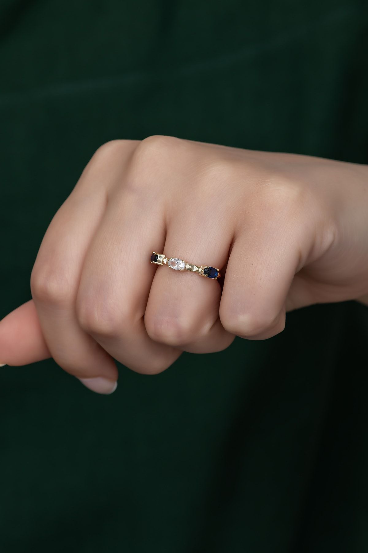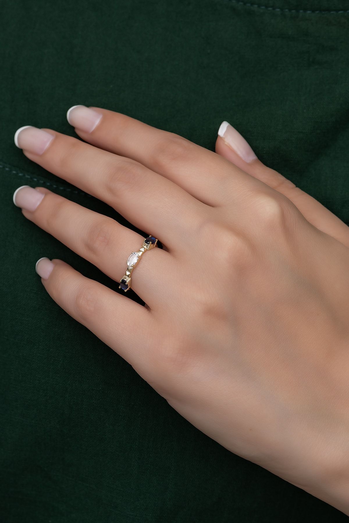 EtiketlerGümüş Prenses Yüzük. Renkli Taşlı Ayarlanabilir Ölçü. Altın Kaplama 925 Ayar Gümüş