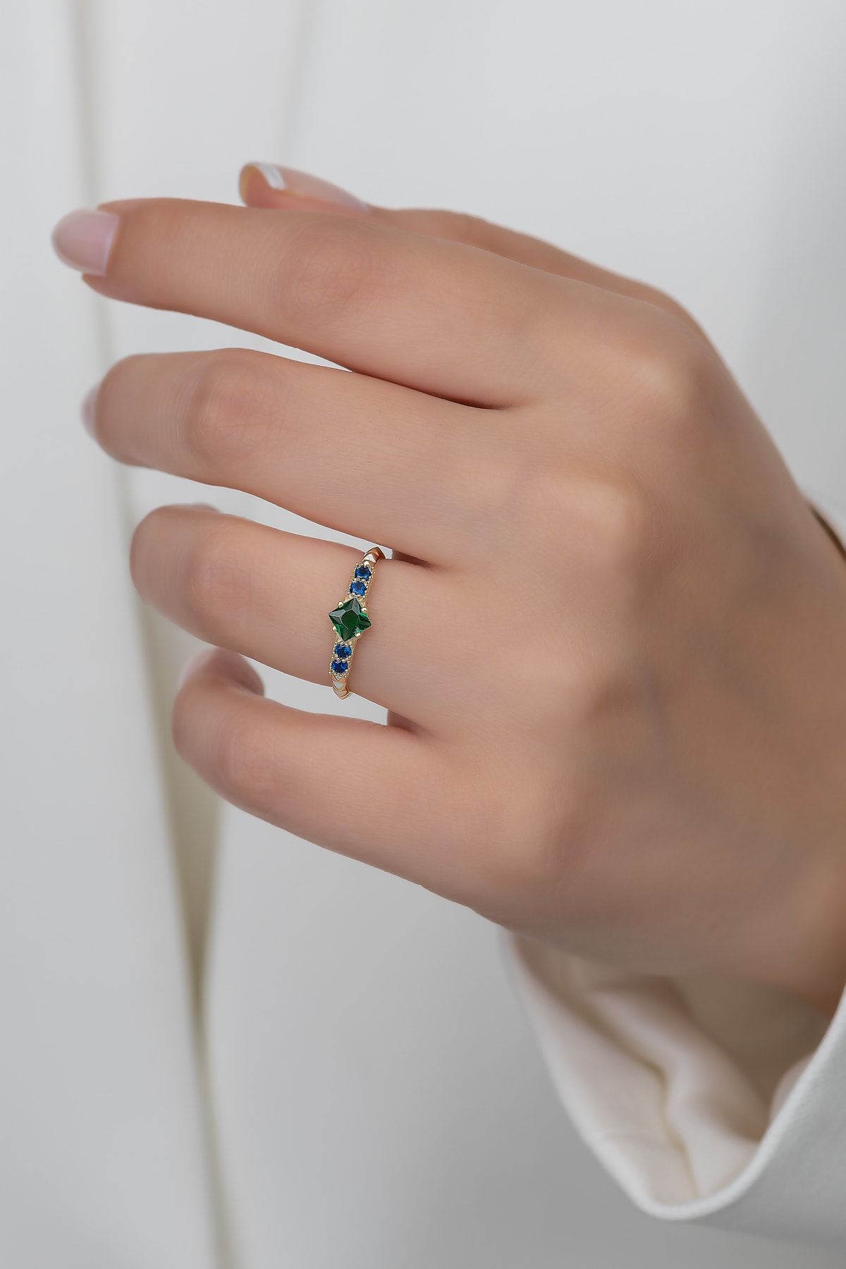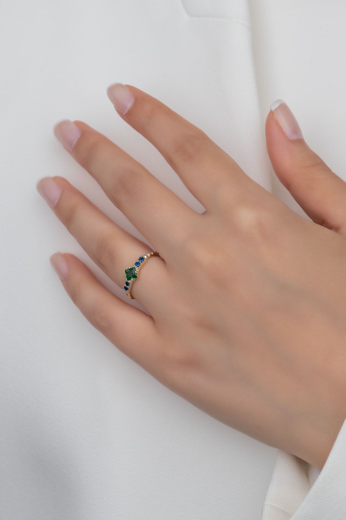 Gümüş Prenses Yüzük. Renkli Taşlı Ayarlanabilir Ölçü. Altın Kaplama 925 Ayar Gümüş