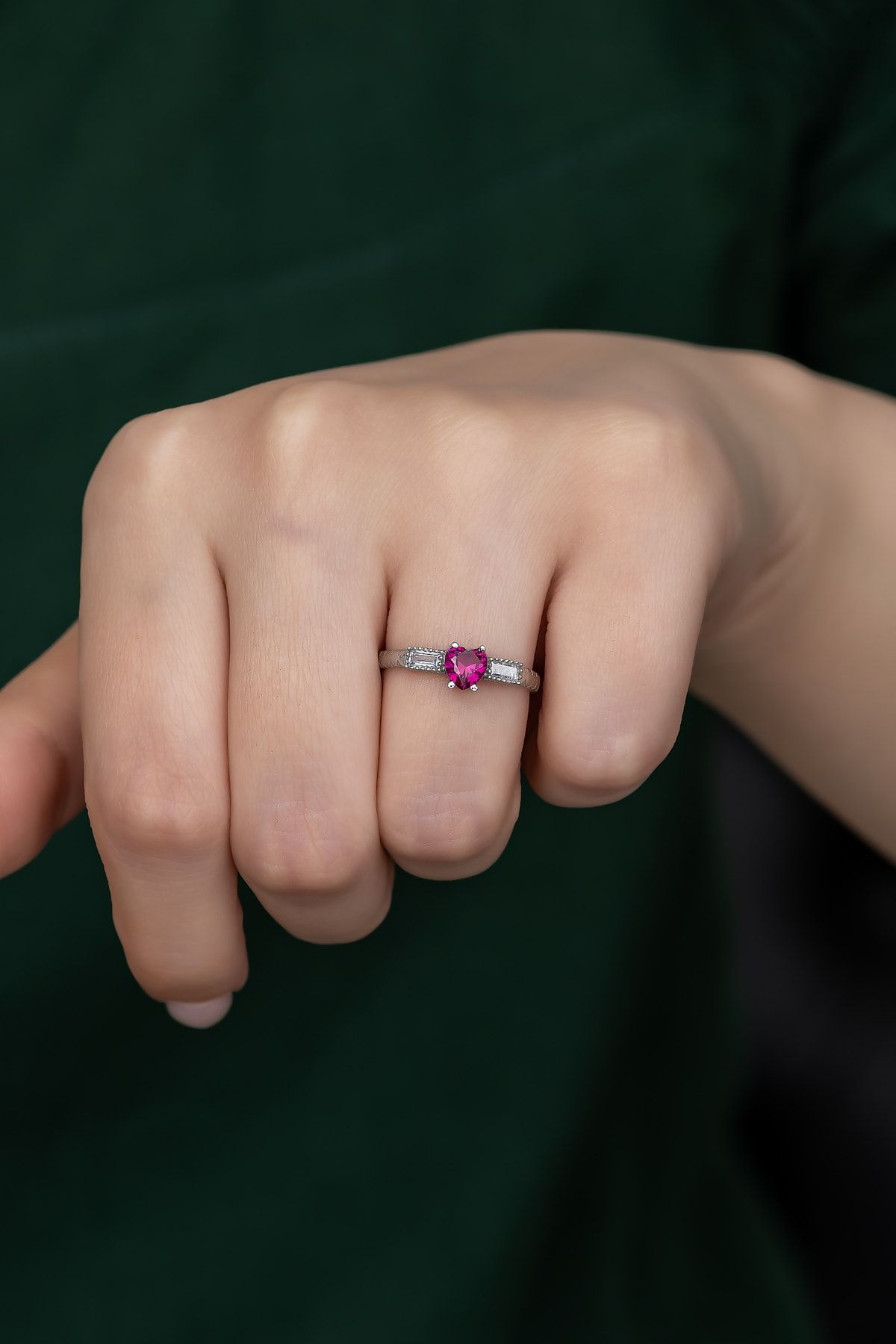 Gümüş Prenses Yüzük. Renkli Taşlı Ayarlanabilir Ölçü. Rodyum Kaplama 925 Ayar Gümüş