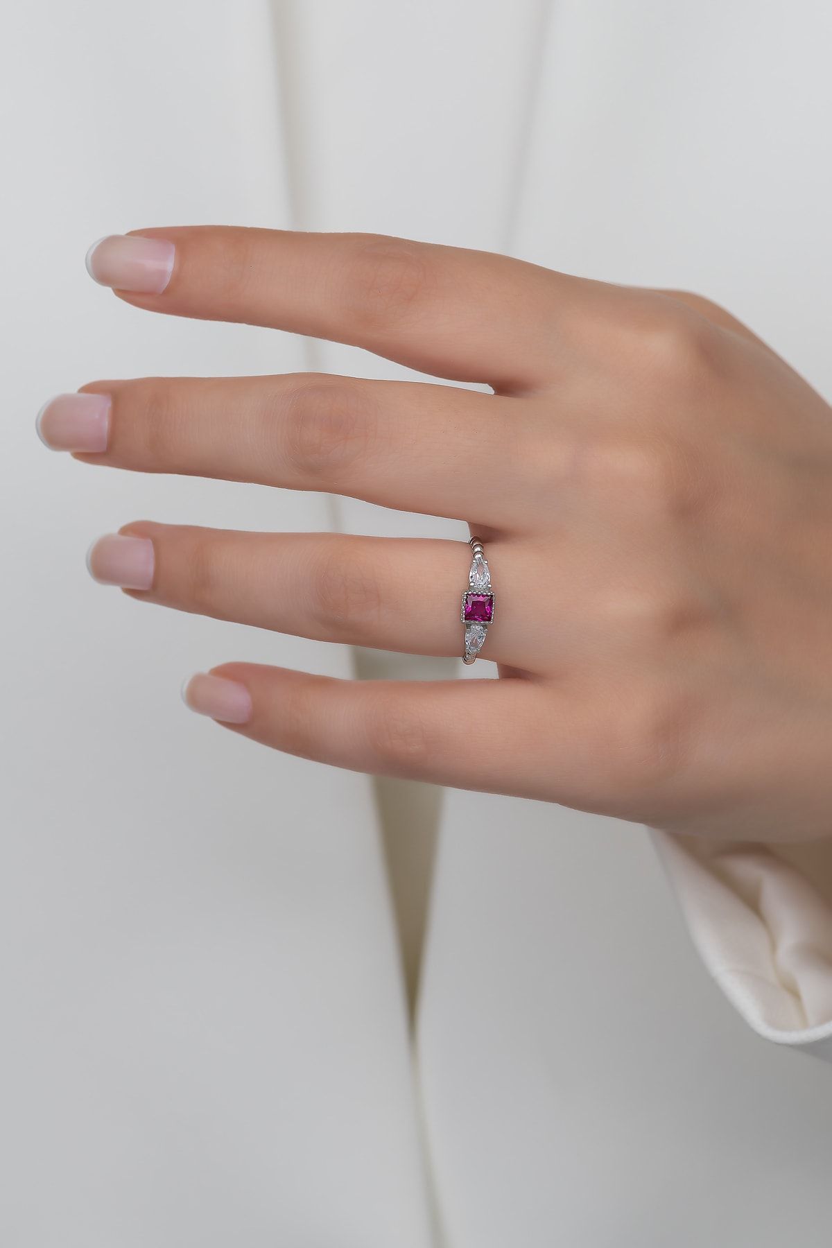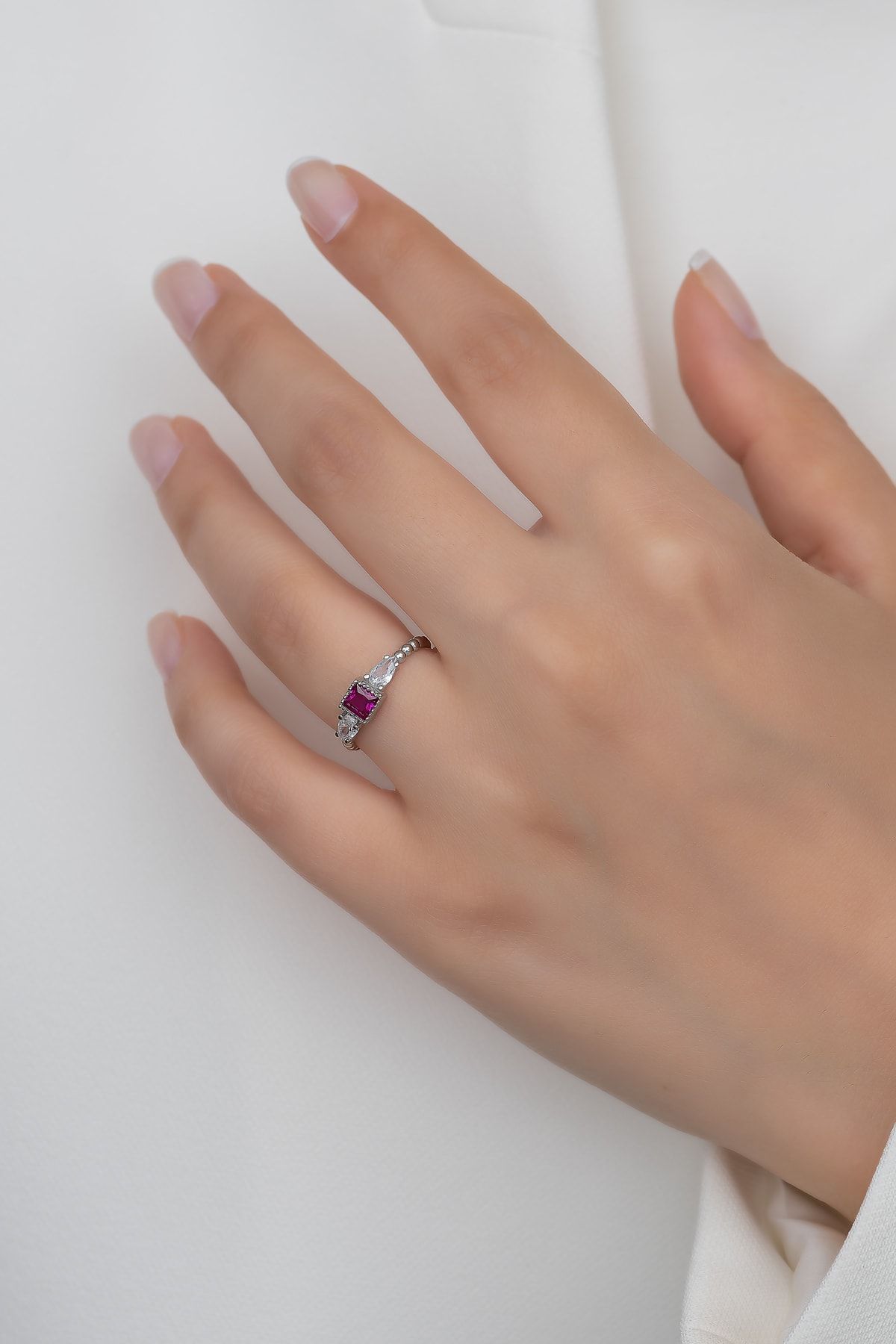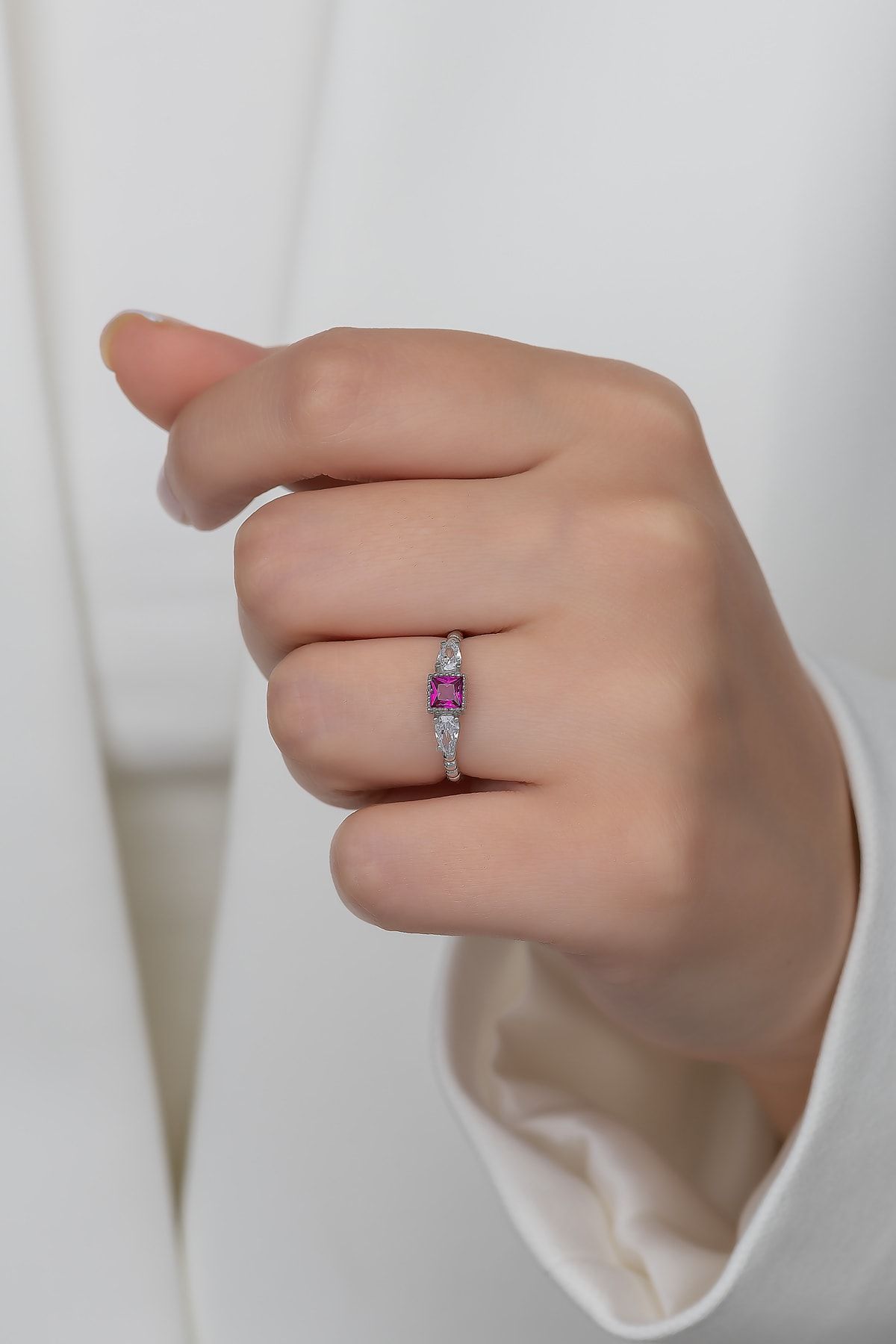 EtiketlerGümüş Prenses Yüzük. Renkli Taşlı Ayarlanabilir Ölçü. Rodyum Kaplama 925 Ayar Gümüş