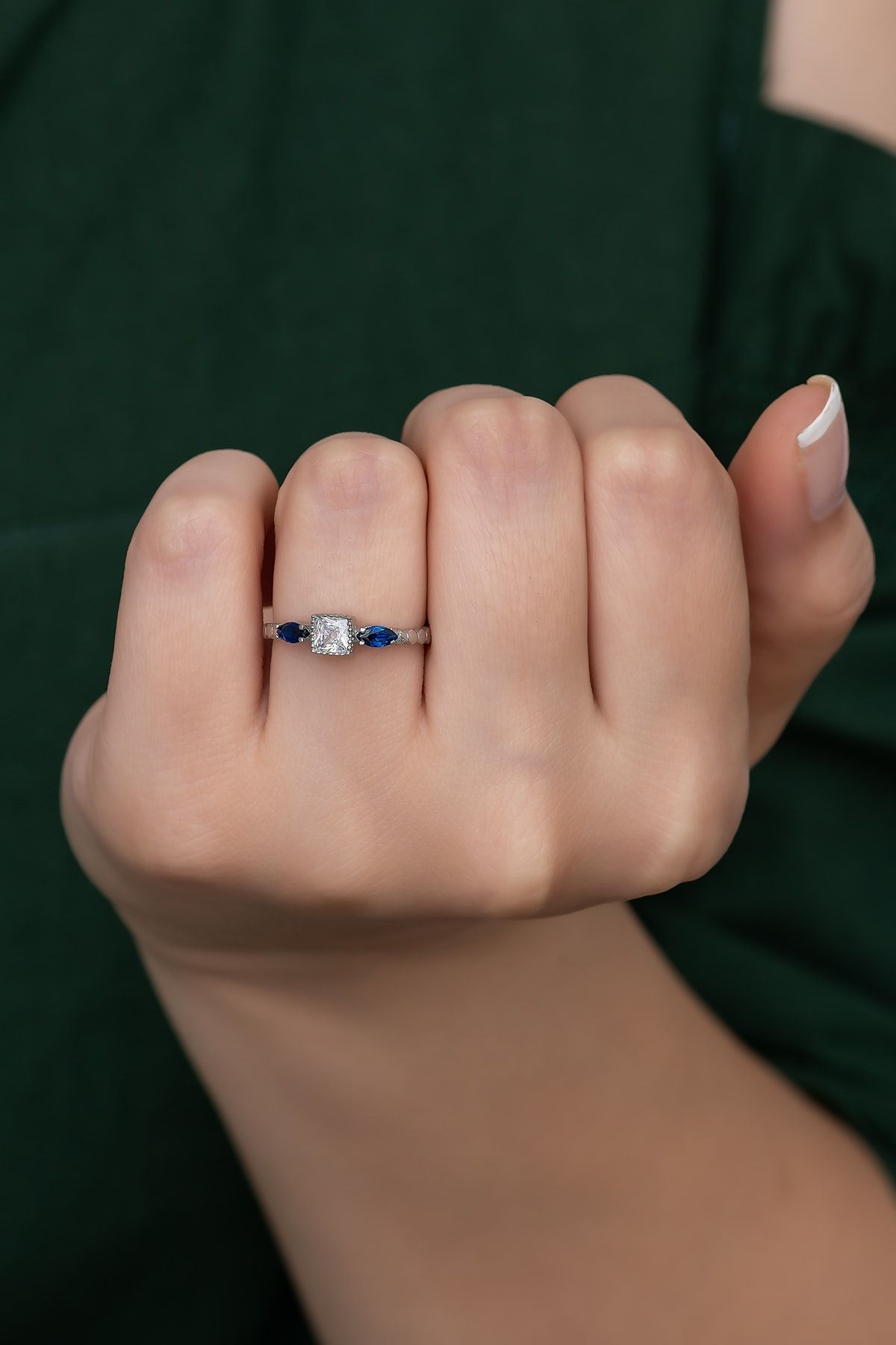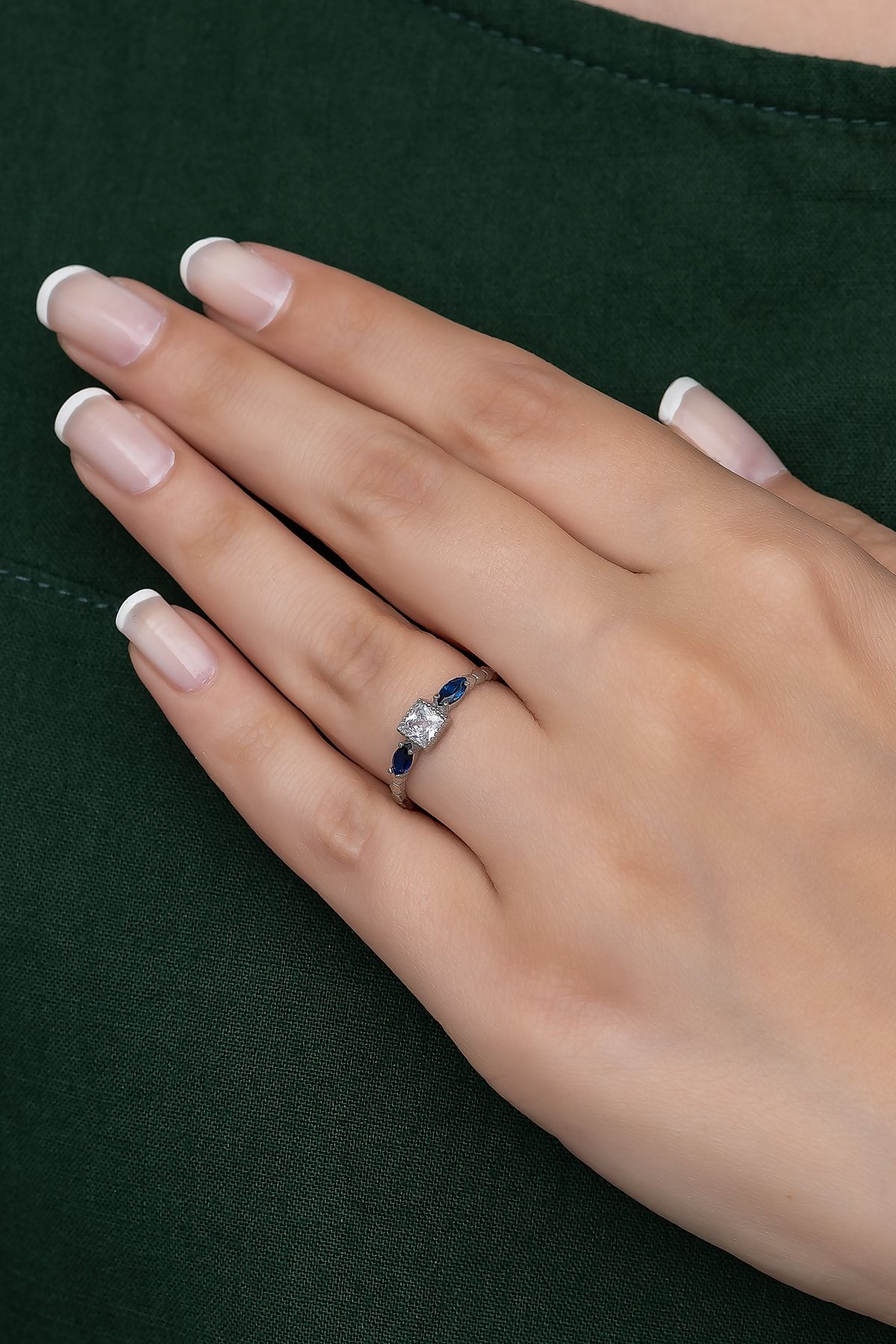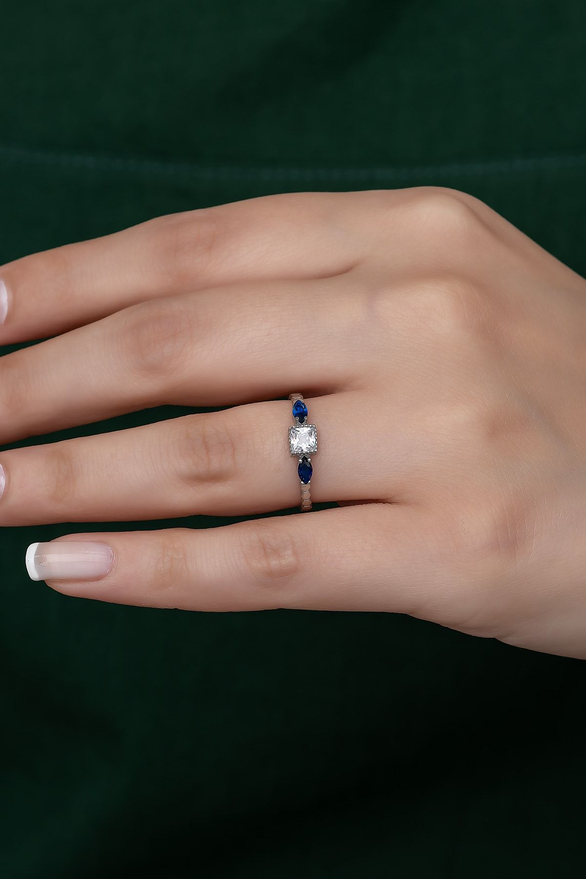 Gümüş Prenses Yüzük. Renkli Taşlı Ayarlanabilir Ölçü. Rodyum Kaplama 925 Ayar Gümüş