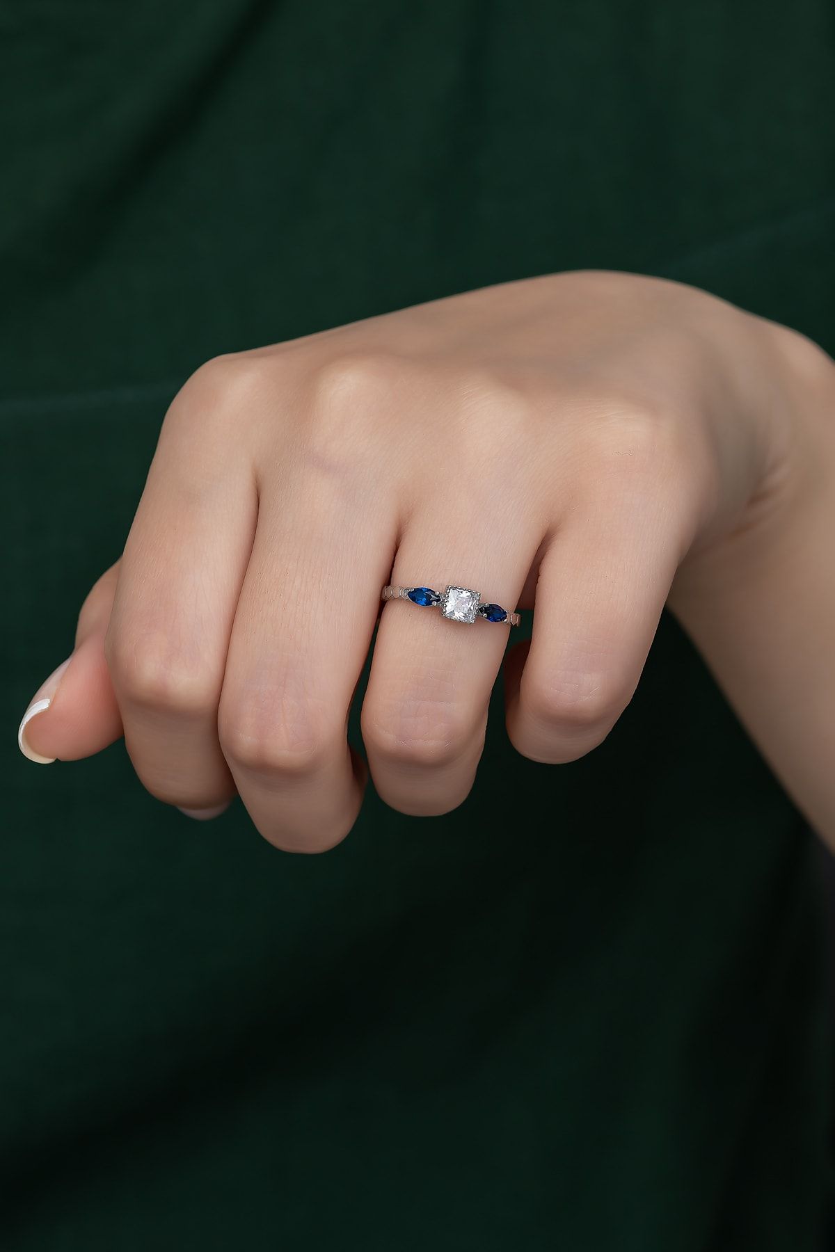 EtiketlerGümüş Prenses Yüzük. Renkli Taşlı Ayarlanabilir Ölçü. Rodyum Kaplama 925 Ayar Gümüş