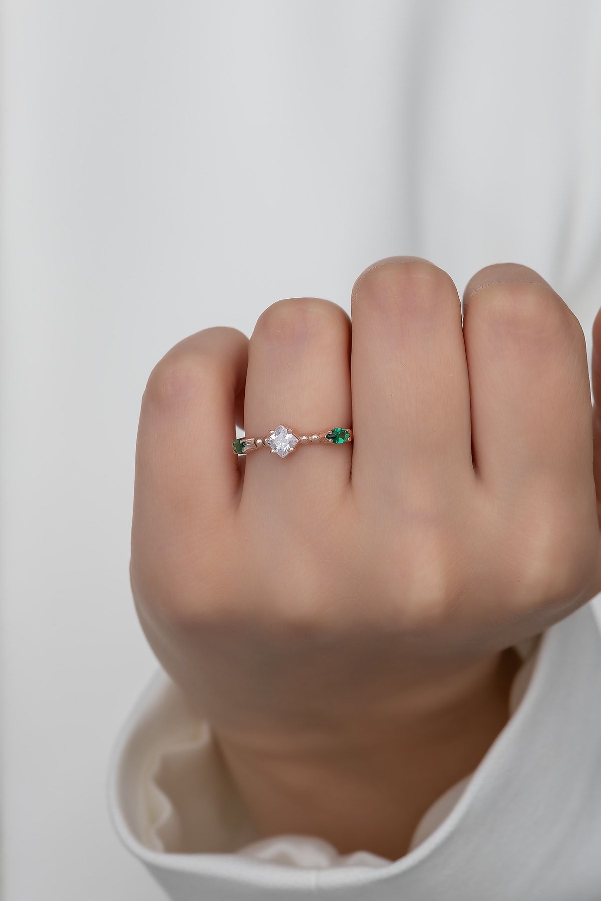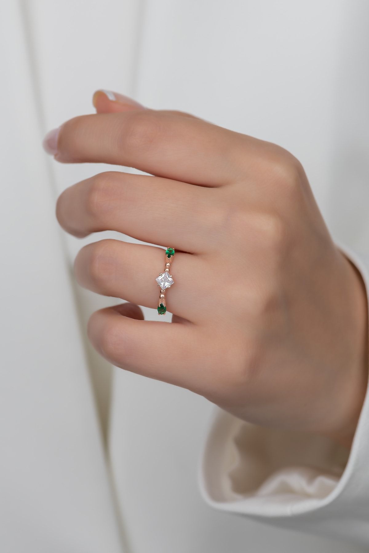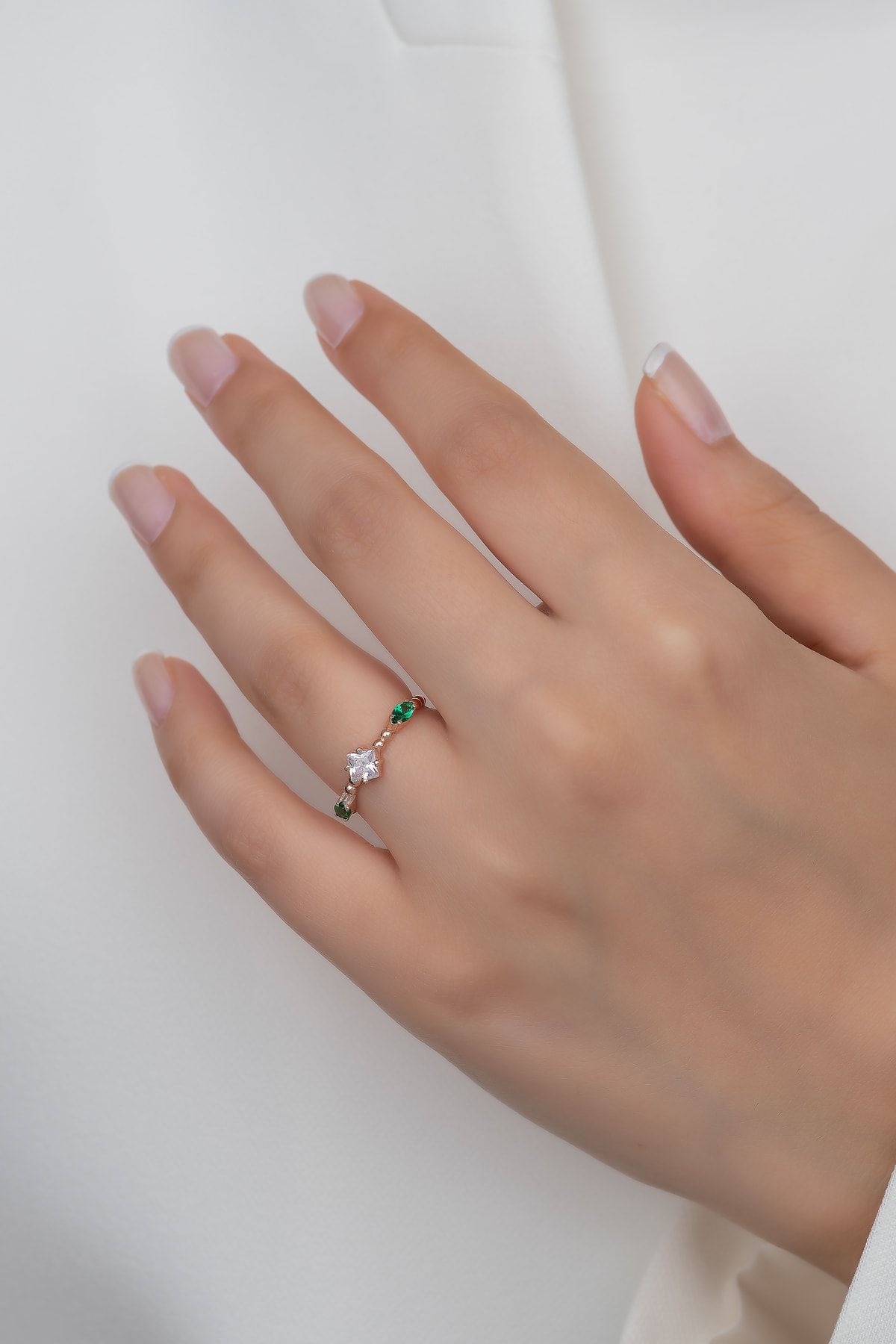 EtiketlerGümüş Prenses Yüzük. Renkli Taşlı Ayarlanabilir Ölçü. Rose Gold Kaplama 925 Ayar Gümüş