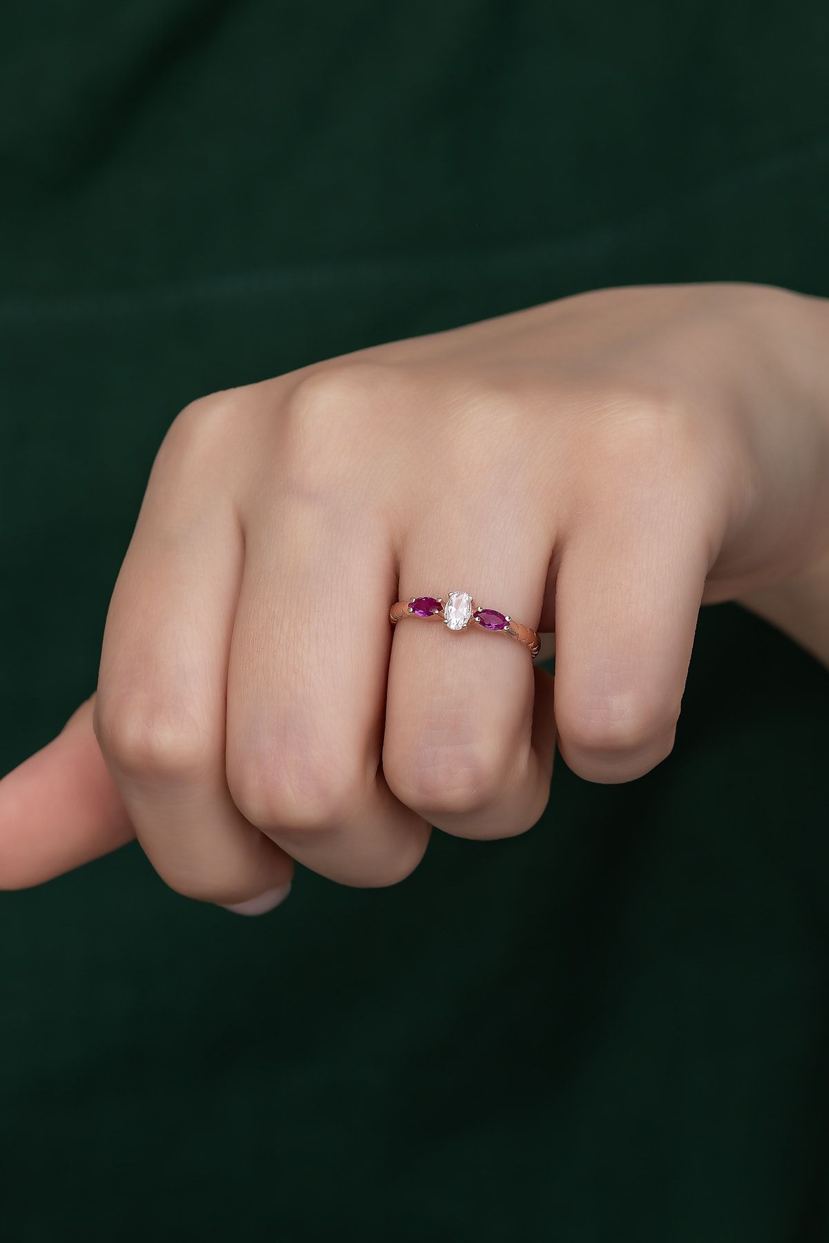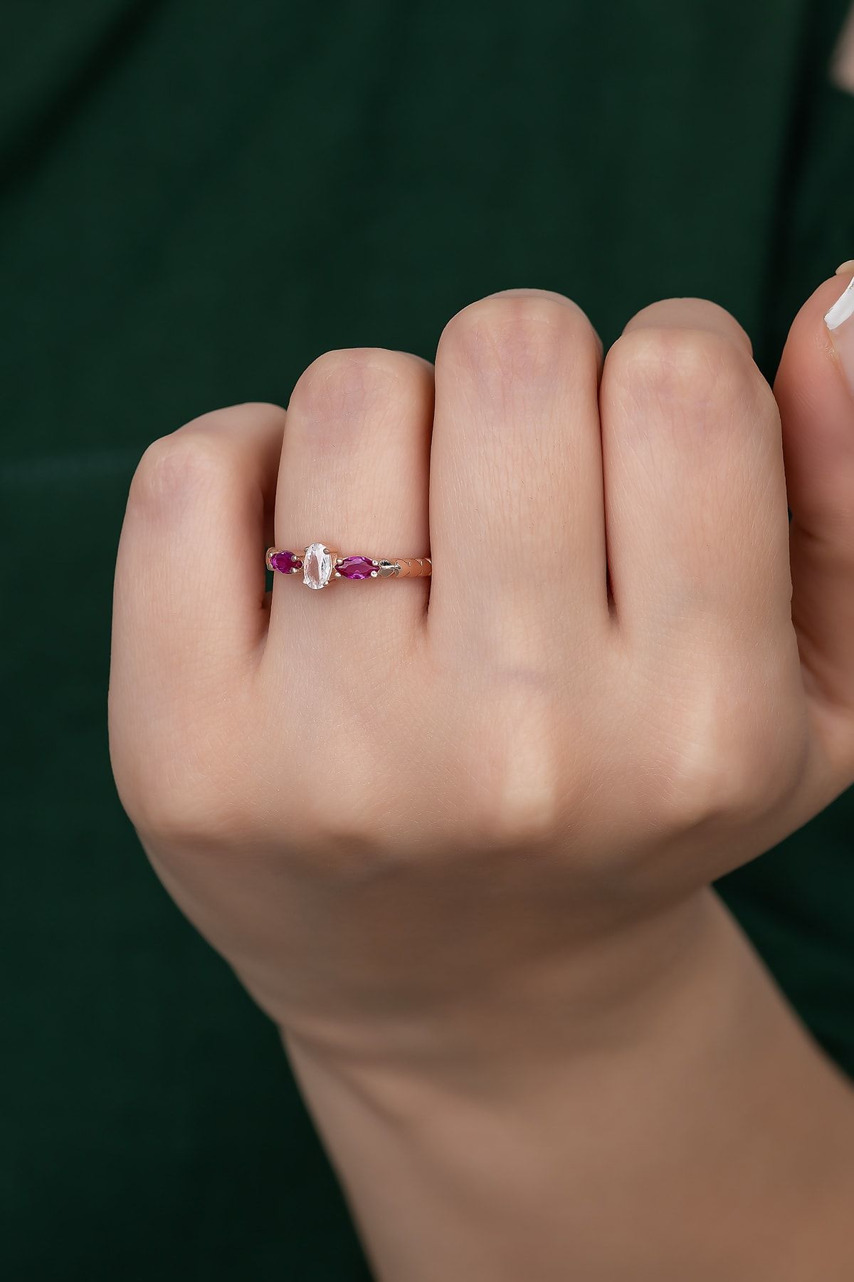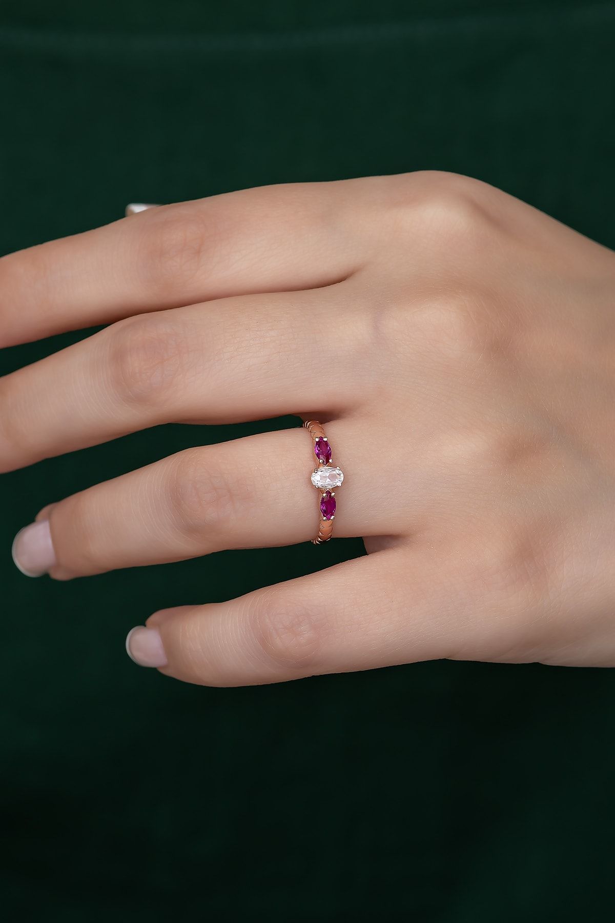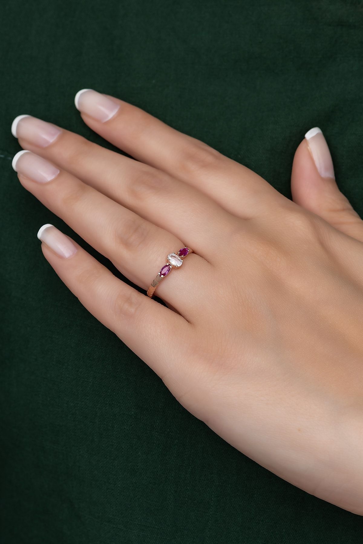 EtiketlerGümüş Prenses Yüzük. Renkli Taşlı Ayarlanabilir Ölçü. Rose Gold Kaplama 925 Ayar Gümüş