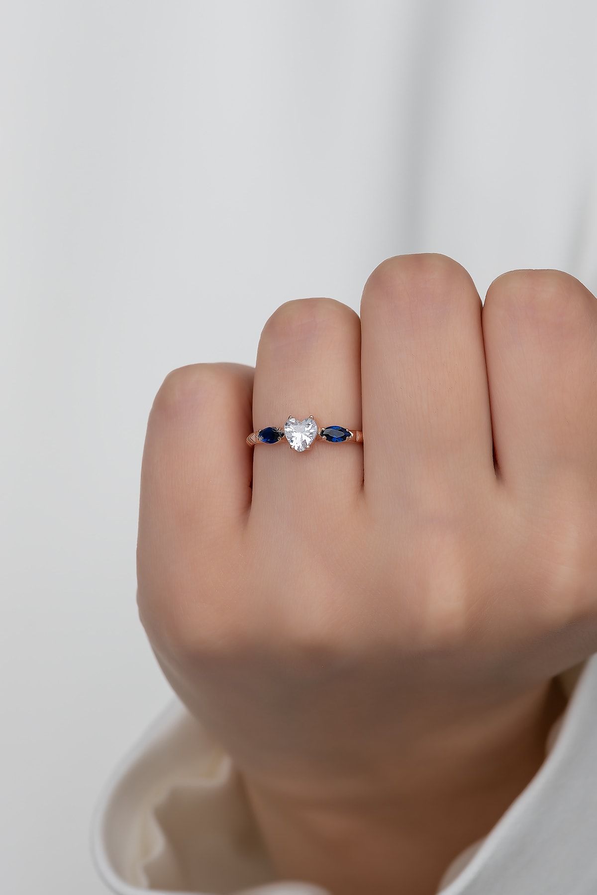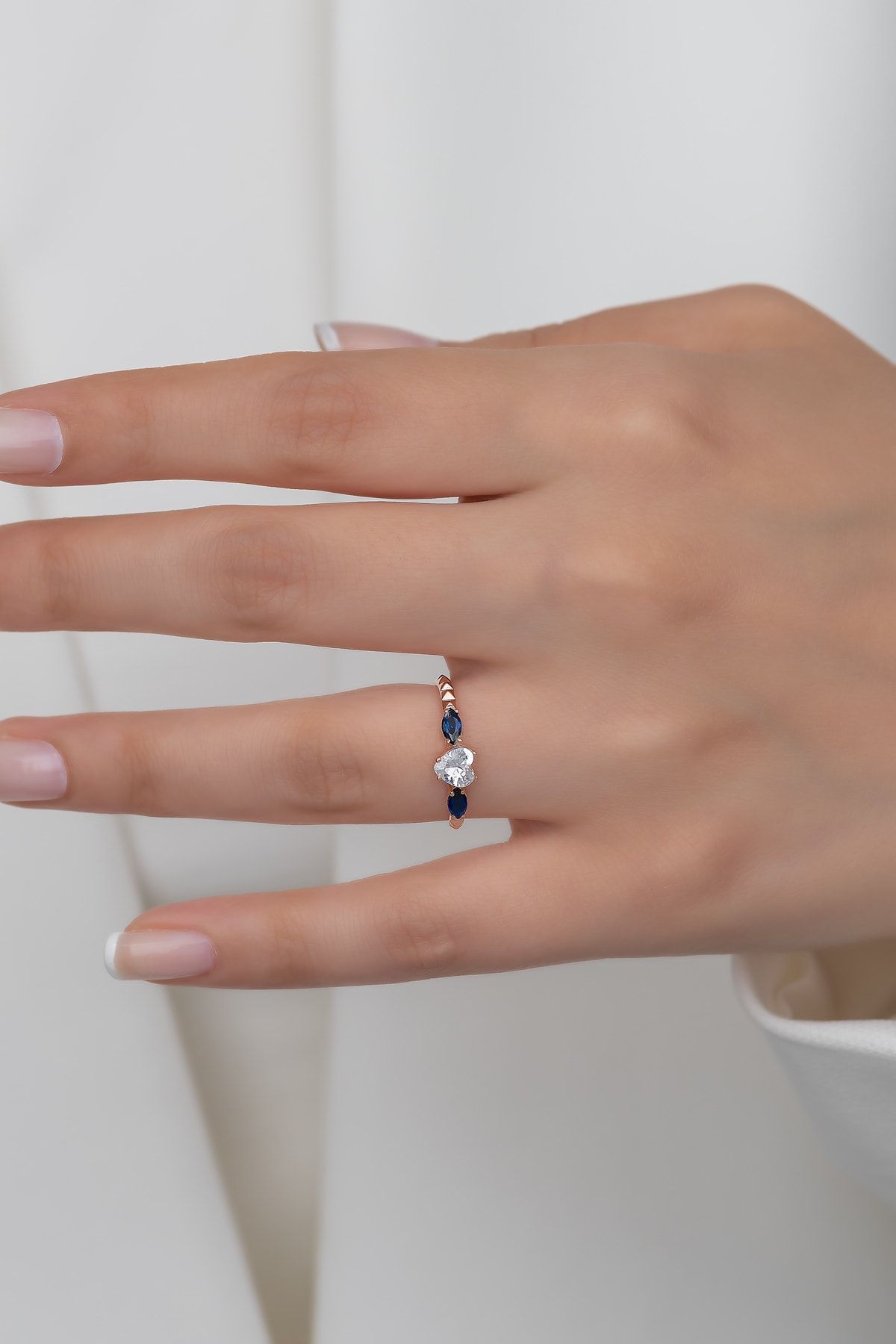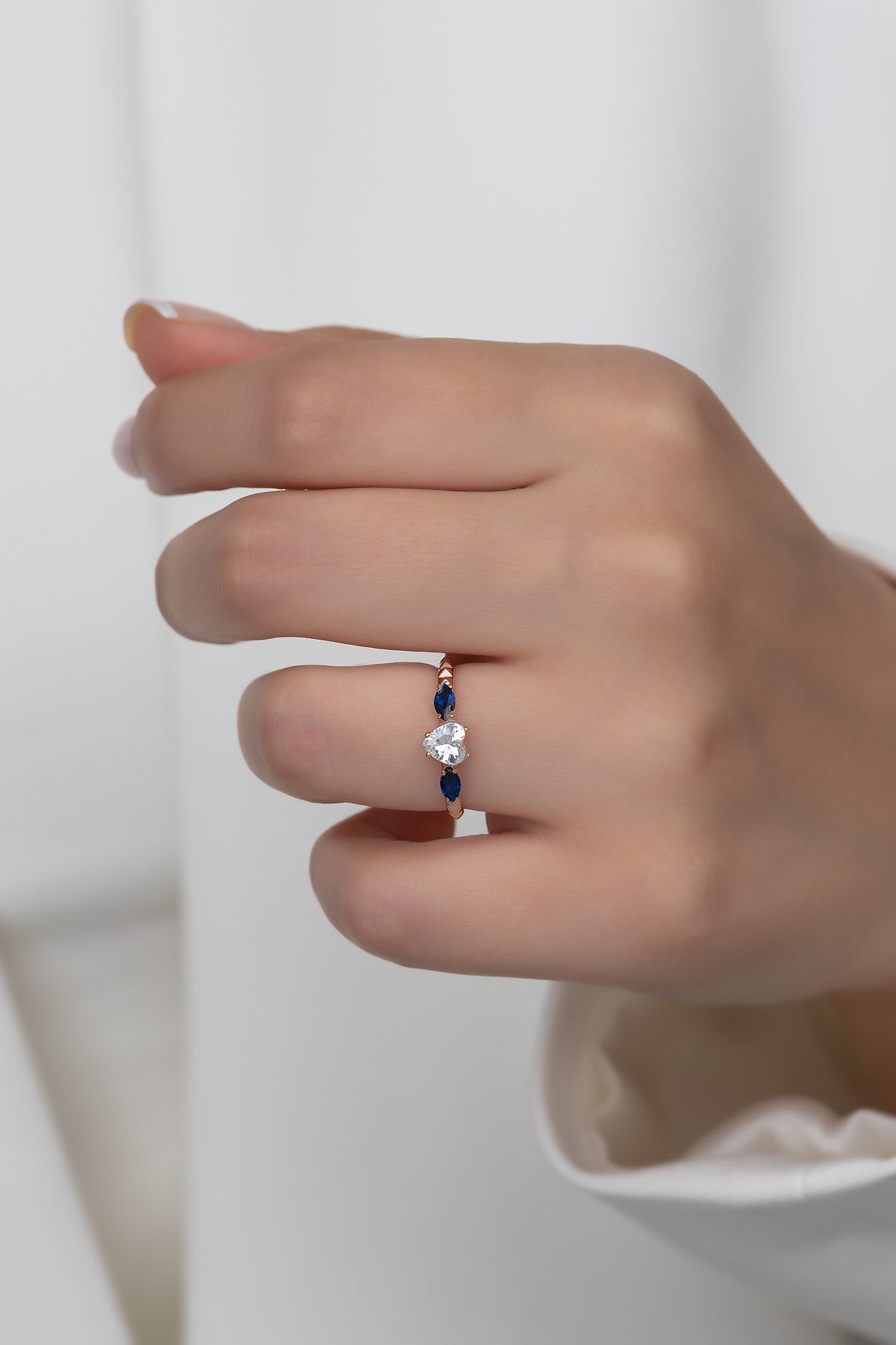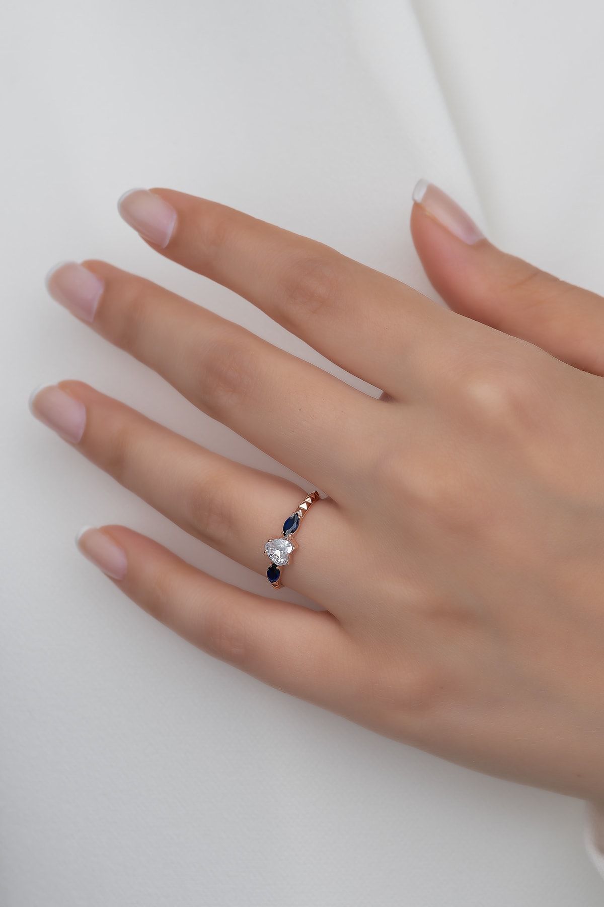 EtiketlerGümüş Prenses Yüzük. Renkli Taşlı Ayarlanabilir Ölçü. Rose Gold Kaplama 925 Ayar Gümüş