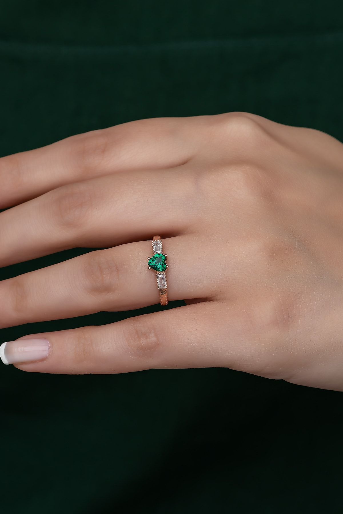 EtiketlerGümüş Prenses Yüzük. Renkli Taşlı Ayarlanabilir Ölçü. Rose Gold Kaplama 925 Ayar Gümüş