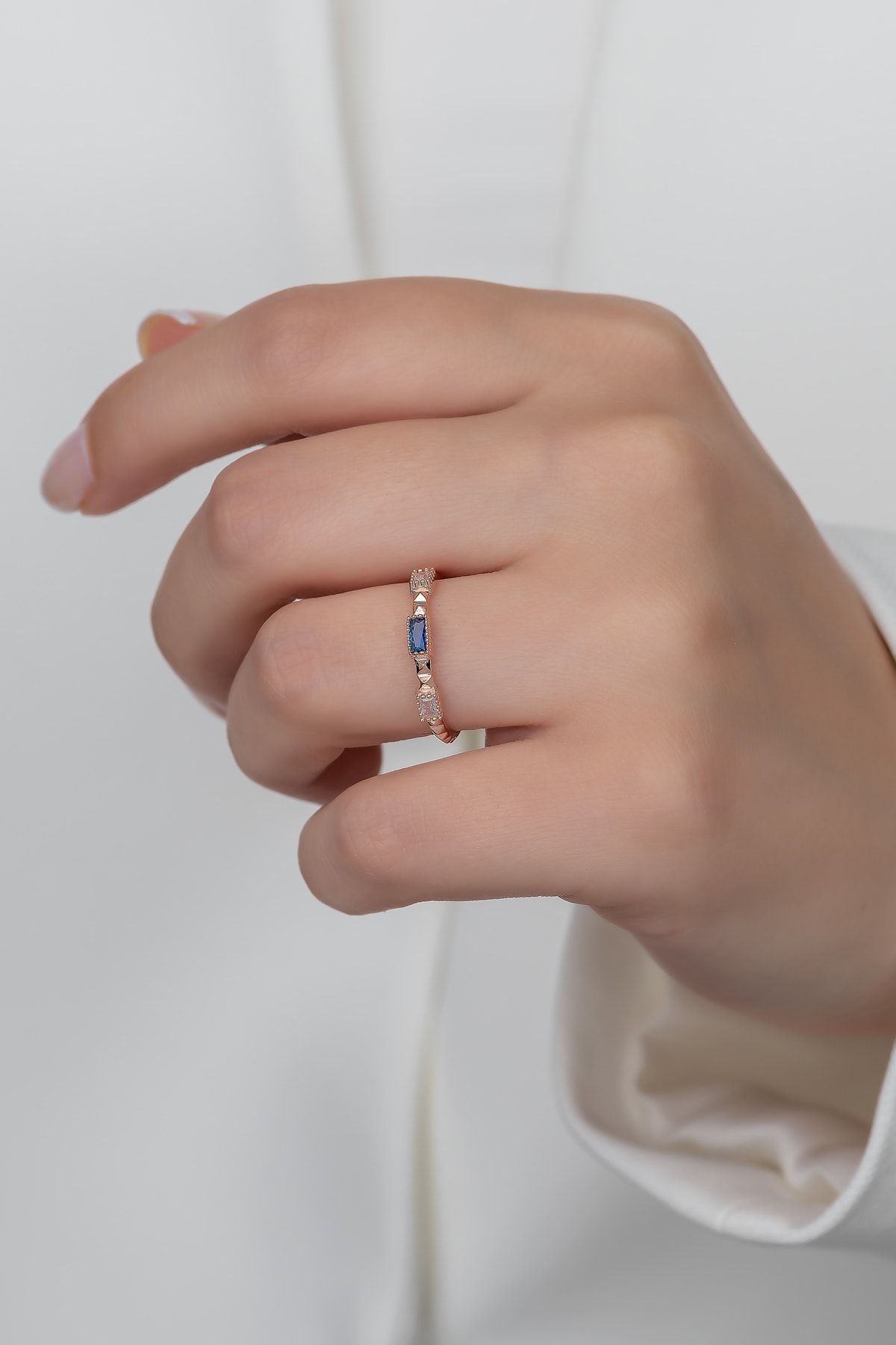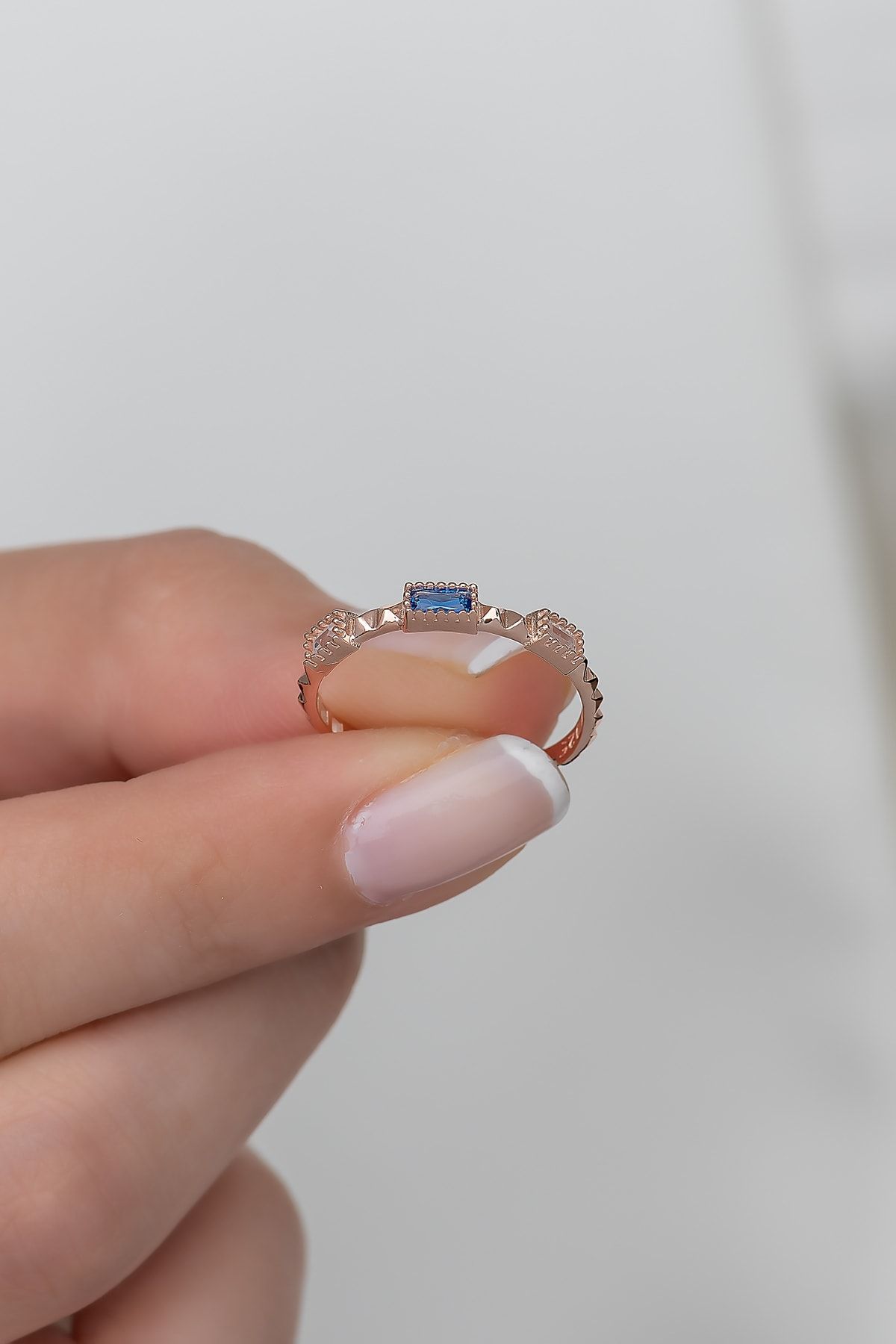 Gümüş Prenses Yüzük. Renkli Taşlı Ayarlanabilir Ölçü. Rose Gold Kaplama 925 Ayar Gümüş