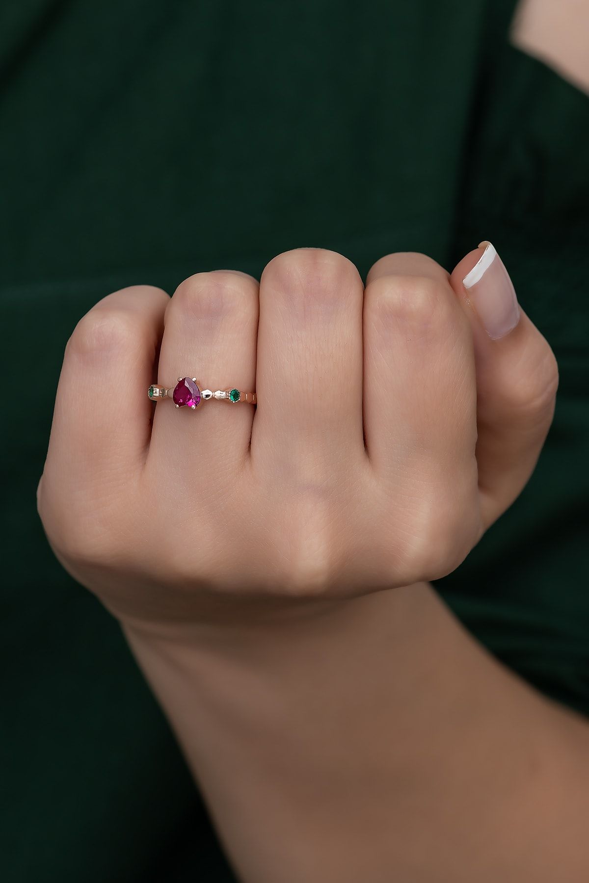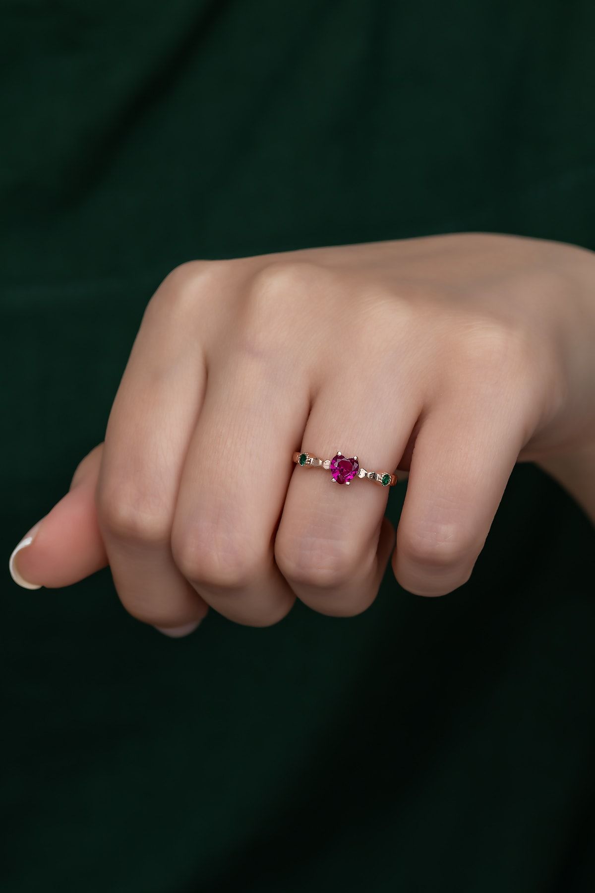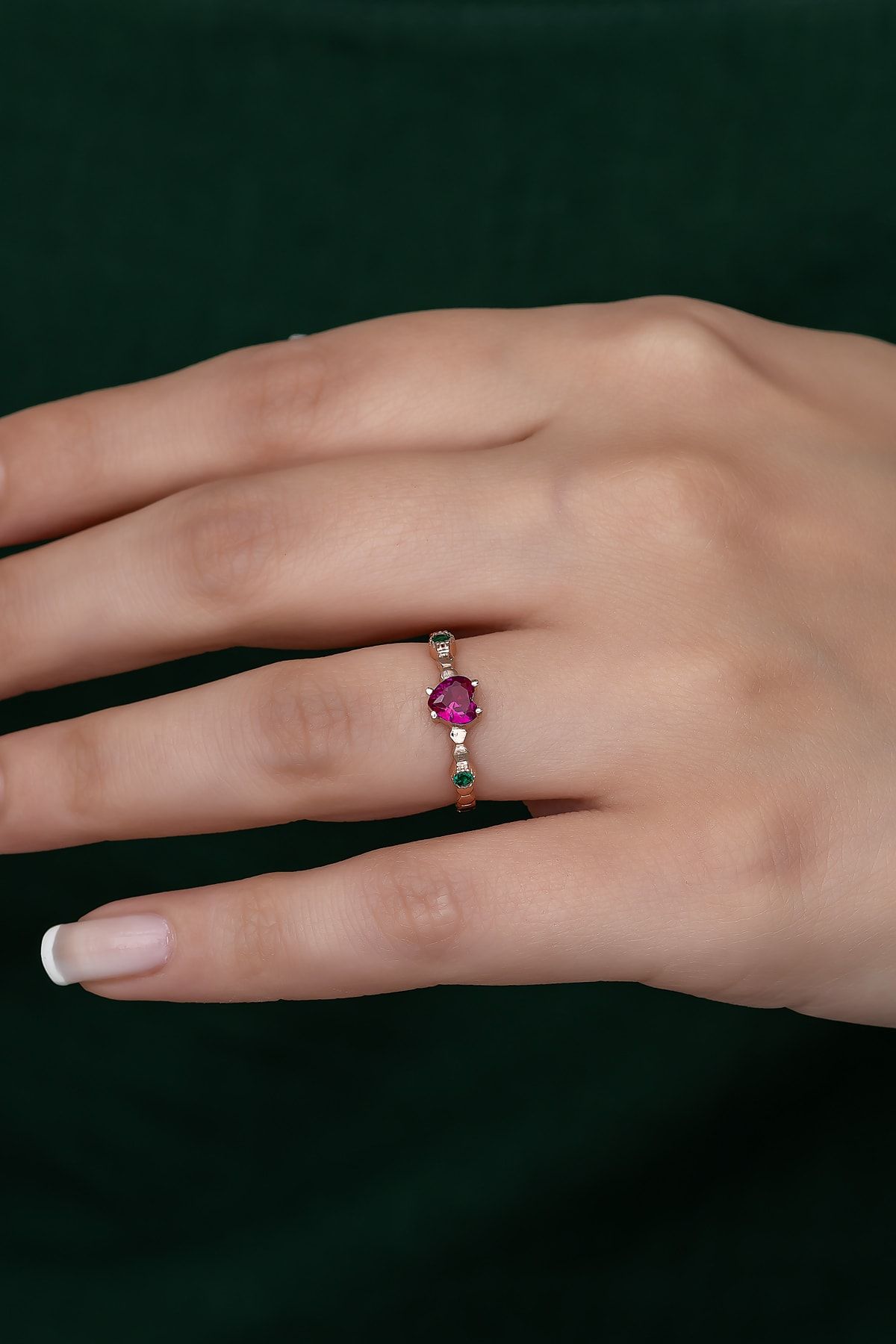EtiketlerGümüş Prenses Yüzük. Renkli Taşlı Ayarlanabilir Ölçü. Rose Gold Kaplama 925 Ayar Gümüş