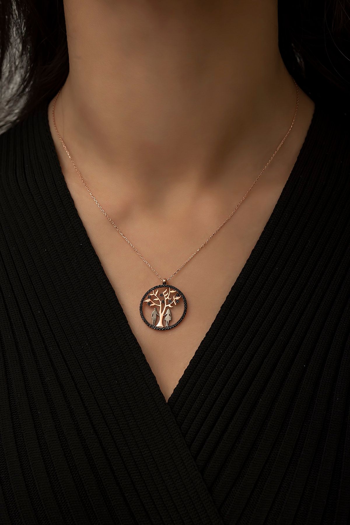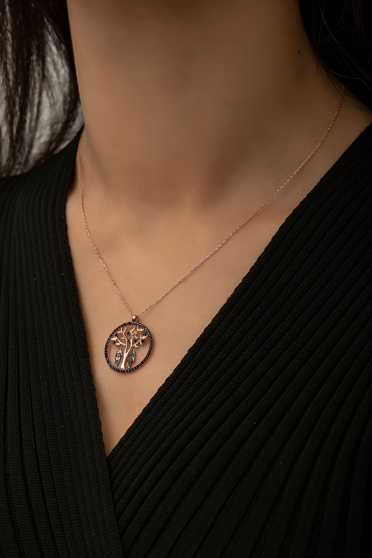 Hayat Ağacı Sevgili Aşk Kolye Siyah Nano Zirkon Taşlı Kolye Rose Gold Kaplama 925 Ayar Gümüş UVPS100508Maden : 925 Ayar GümüşDeğerli Taş : Nano ZirkonKaplama: Rose Altın.Renk : Rose Altın.Zincir uzunluğu : 43 cm (+-) + Uzatma ek zincirÜrün ağırlığı : 6.00 Gr (+-).Teslimat: Papatya Silver tarafından Ürün ahşap hediye kutusunda gönderilecektir.