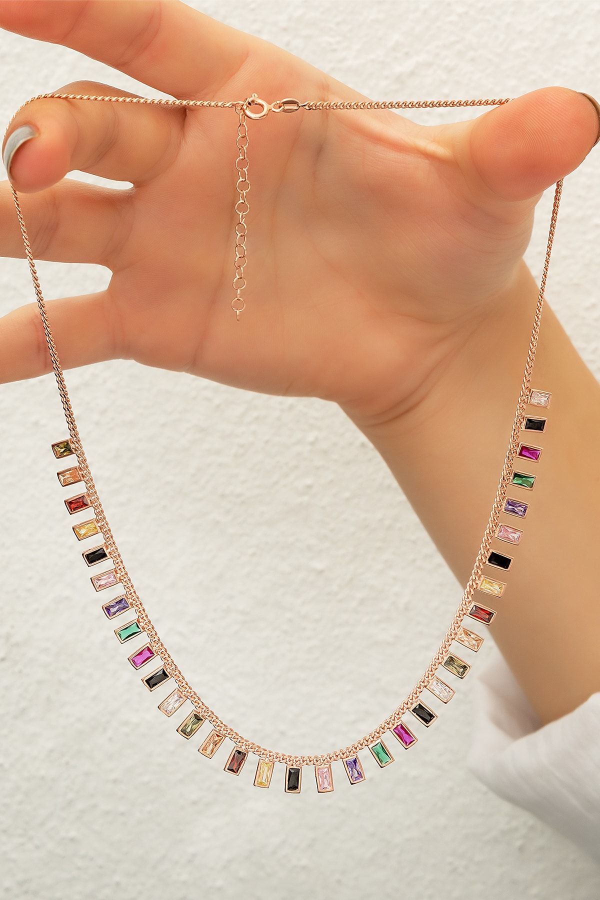 Kadın Altın 925 Ayar Gümüş Mix Renkli Taşlı Tiffany Kolye