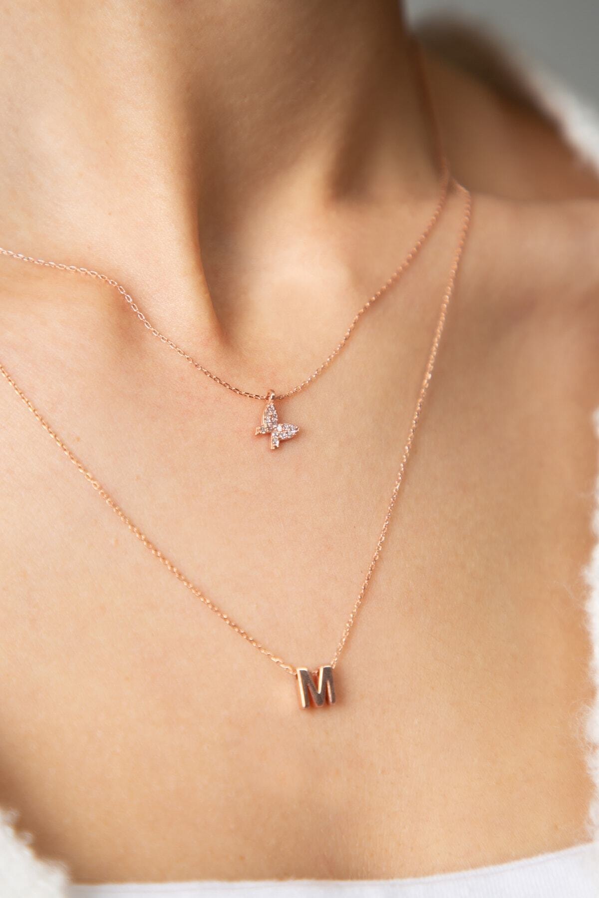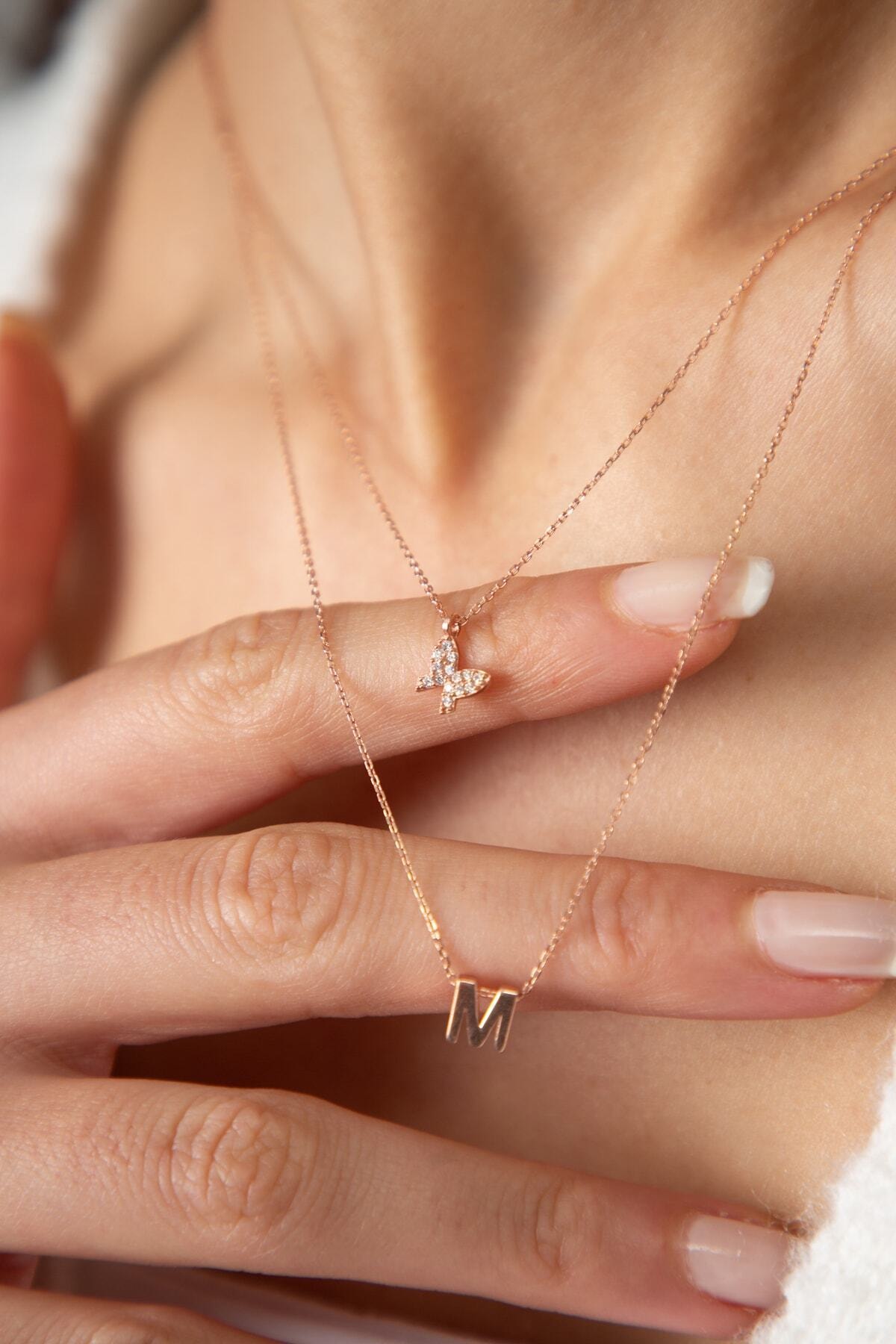 EtiketlerKadın Asansörlü Kelebek Ve Harf Model 925 Ayar Gümüş Kolye