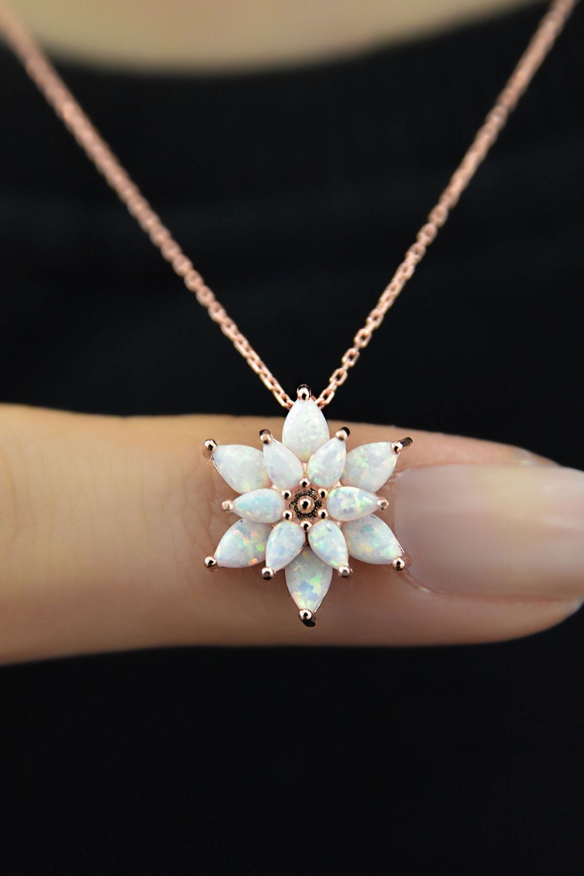 Kadın Beyaz Opal Taşlı Kamelya Gümüş Kolye
