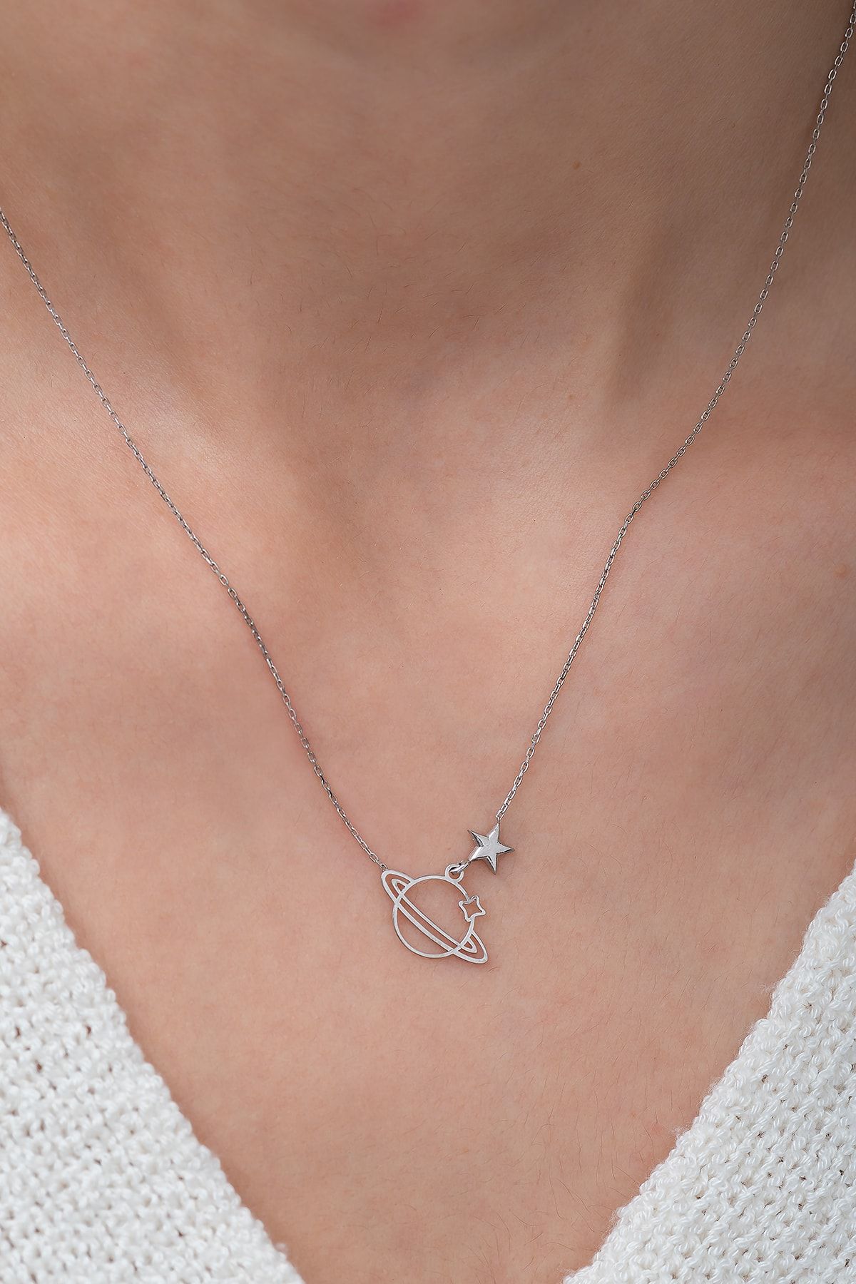 EtiketlerKadın Gümüş Rodyum Kaplama Gümüş Gezegen Kolye Uvps100866 925 Ayar