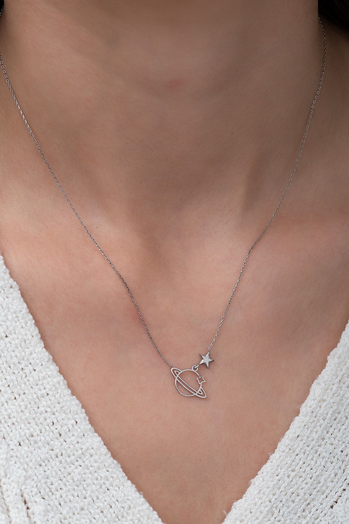 Kadın Gümüş Rodyum Kaplama Gümüş Gezegen Kolye Uvps100866 925 Ayar