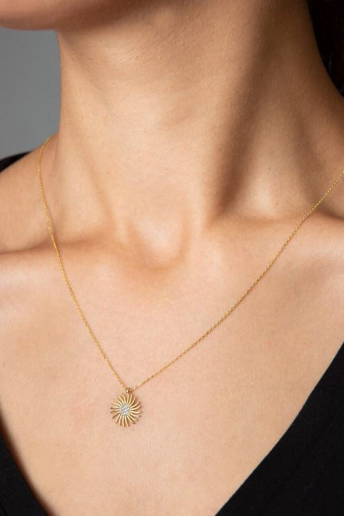 Kadın Güneş Model 925 Ayar Gümüş Kolye.Maden : 925 Ayar Gümüş.Renk : Altın.Taş: Zirkon.Zincir Uzunluğu: 42 cm.Teslimat: Ürün kutusunda gönderilecektir.Ürün Ağırlığı : 2,00 gr ( +-). Gümüş ve değerli taşlar nedeniyle belirtilen ortalama ürün ağırlığında ± %10 sapma olabilmektedir.