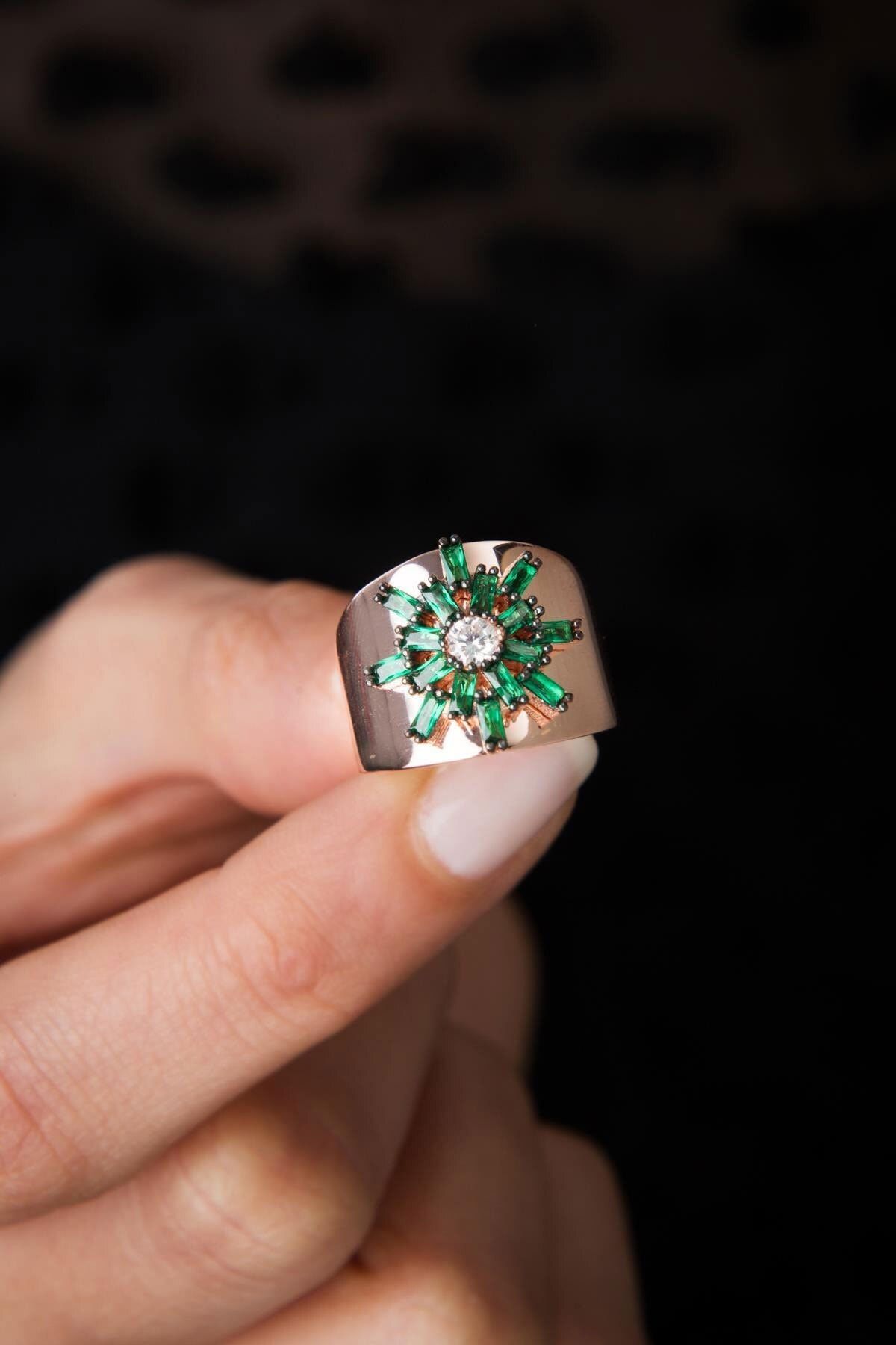 925 Ayar Yeşil Taşlı Ayarlanabilir Gümüş Güneş Yüzük. Maden : 925 Ayar Gümüş. Kaplama: Rose Altın. Renk : Rose Altın.Taş: ZirkonTeslimat: Ürün ahşap hediye kutusunda gönderilecektir.