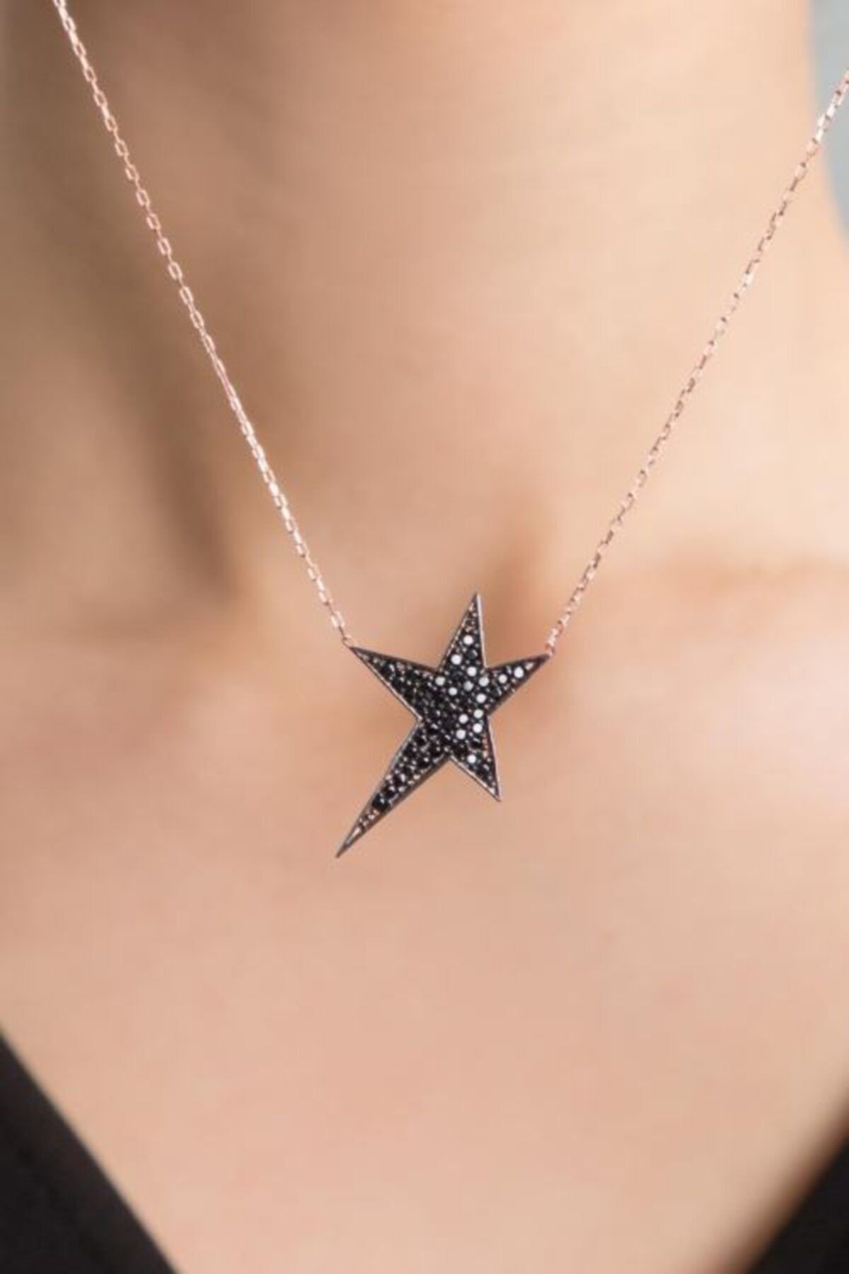 Kadın Siyah Taşlı Yıldız Model Rose Kaplama 925 Ayar Gümüş Kolye. Maden : 925 Ayar Gümüş.Renk : Rose Altın. Taş: Zirkon. Zincir Uzunluğu: 42 cm. Teslimat: Papatya Silver tarafından Ürün ahşap hediye kutusunda gönderilecektir. Ürün Ağırlığı : 2,70 gr ( +-). Gümüş ve değerli taşlar nedeniyle belirtilen ortalama ürün ağırlığında ± %10 sapma olabilmektedir.