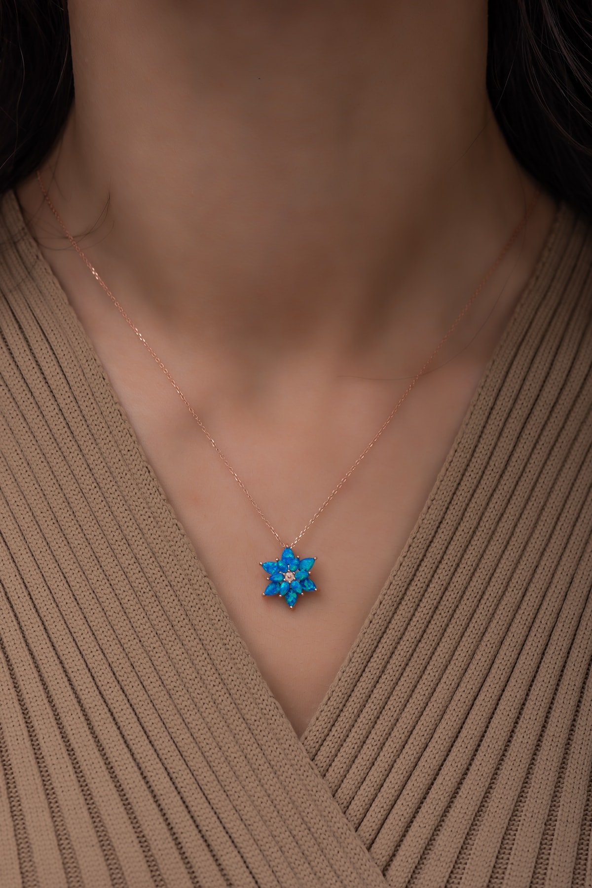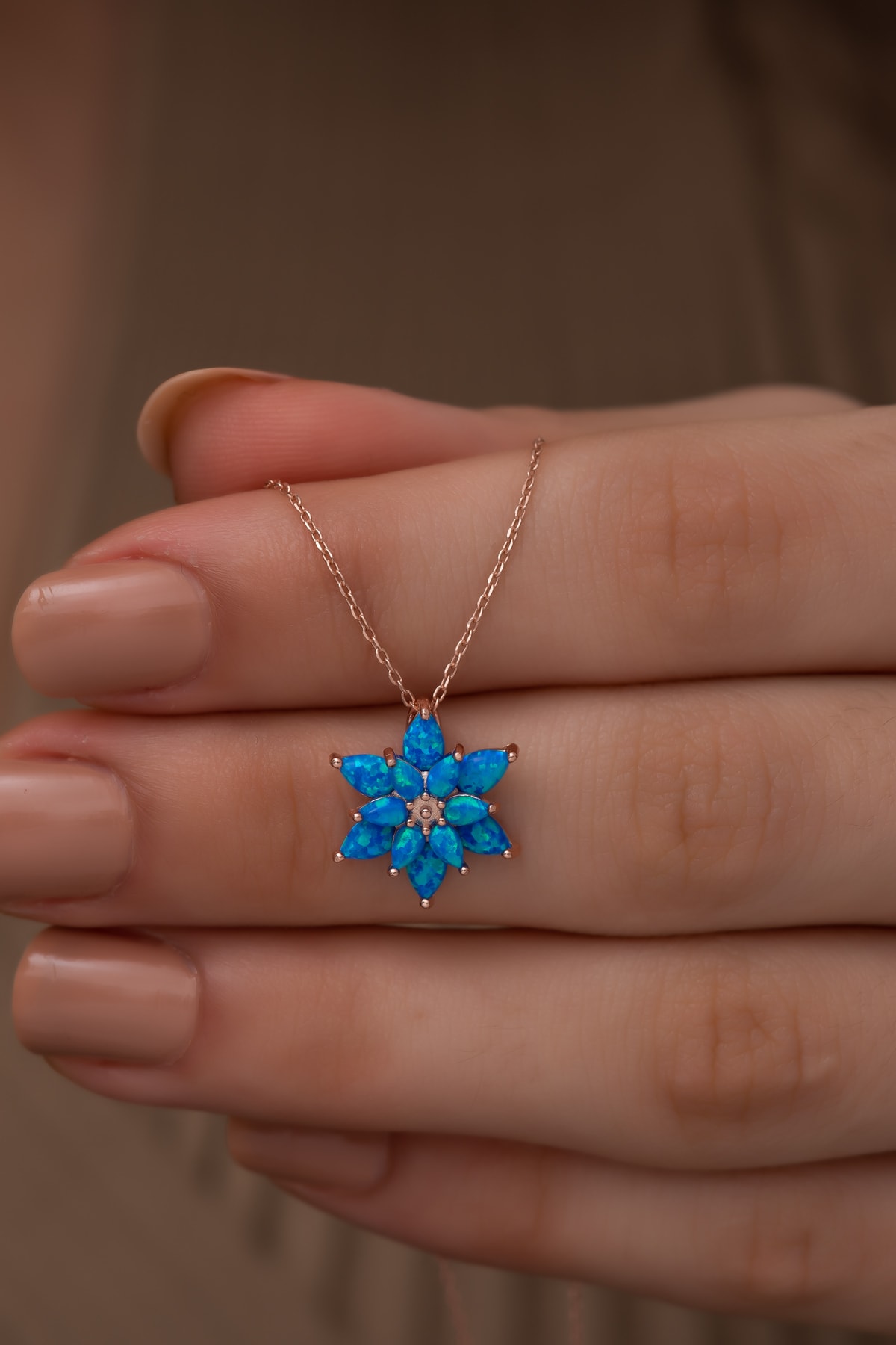EtiketlerMavi Opal Taşlı 925 Ayar Gümüş Lotus Kolye