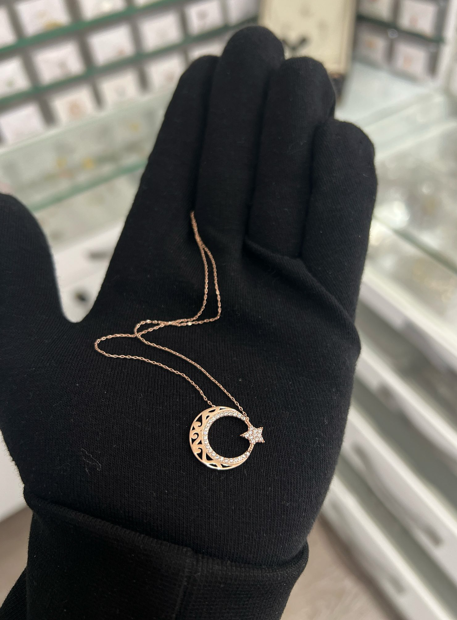 925 Ayar Gümüş Rose Kaplama Yeşil Taşlı Tasarım Sedef Manolya Çiçeği Kolye