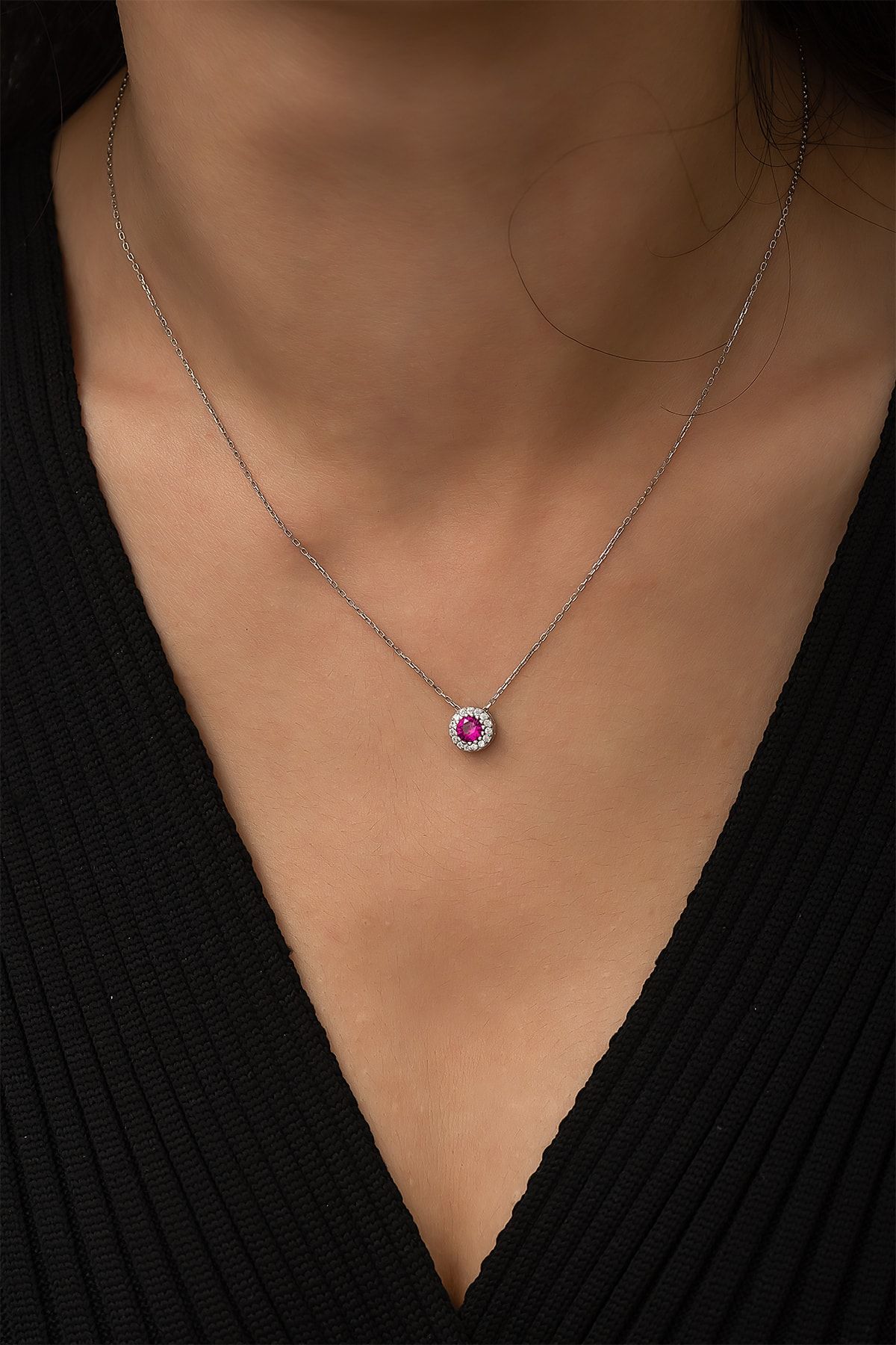925 Ayar Gümüş Rose Kaplama Mistik Taşlı Lale Kolye