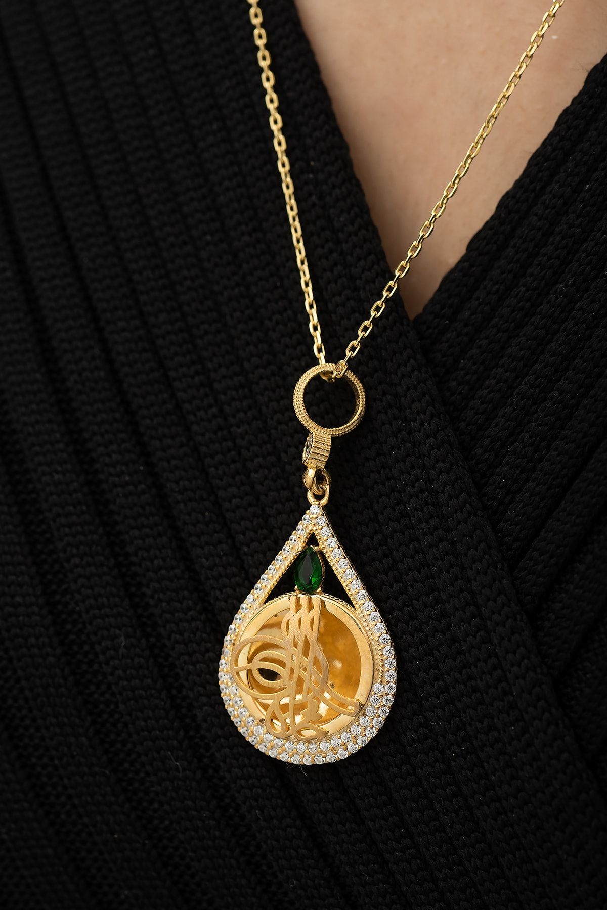 Osmanlı Tuğra Kolye Damla Formlu Nano Zirkon Taşlı 14 Ayar Altın Kaplama 925 Ayar Gümüş UVPS100482Maden : 925 Ayar Gümüş.Kaplama : 14 Ayar AltınDeğerli Taş : Nano ZirkonRenk : AltınZincir uzunluğu : 55 cm.Ürün ağırlığı : 10,00. Gr (+-).Teslimat: Papatya Silver tarafından Ürün ahşap hediye kutusunda gönderilecektir.