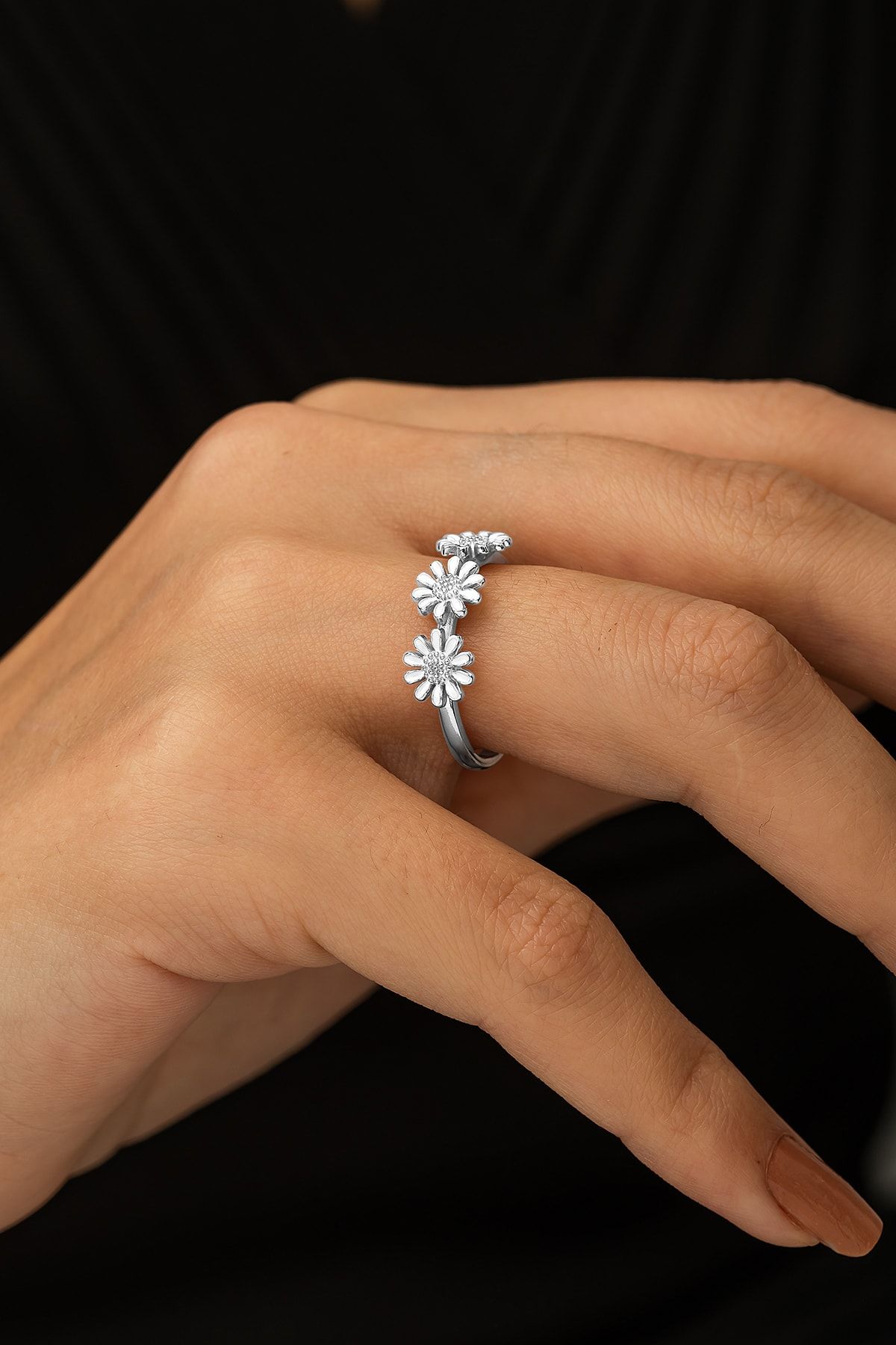 Papatya Ahengi Üç Sıra Yüzük Rodyum Kaplama 925 Ayar Gümüş - Uvps400040