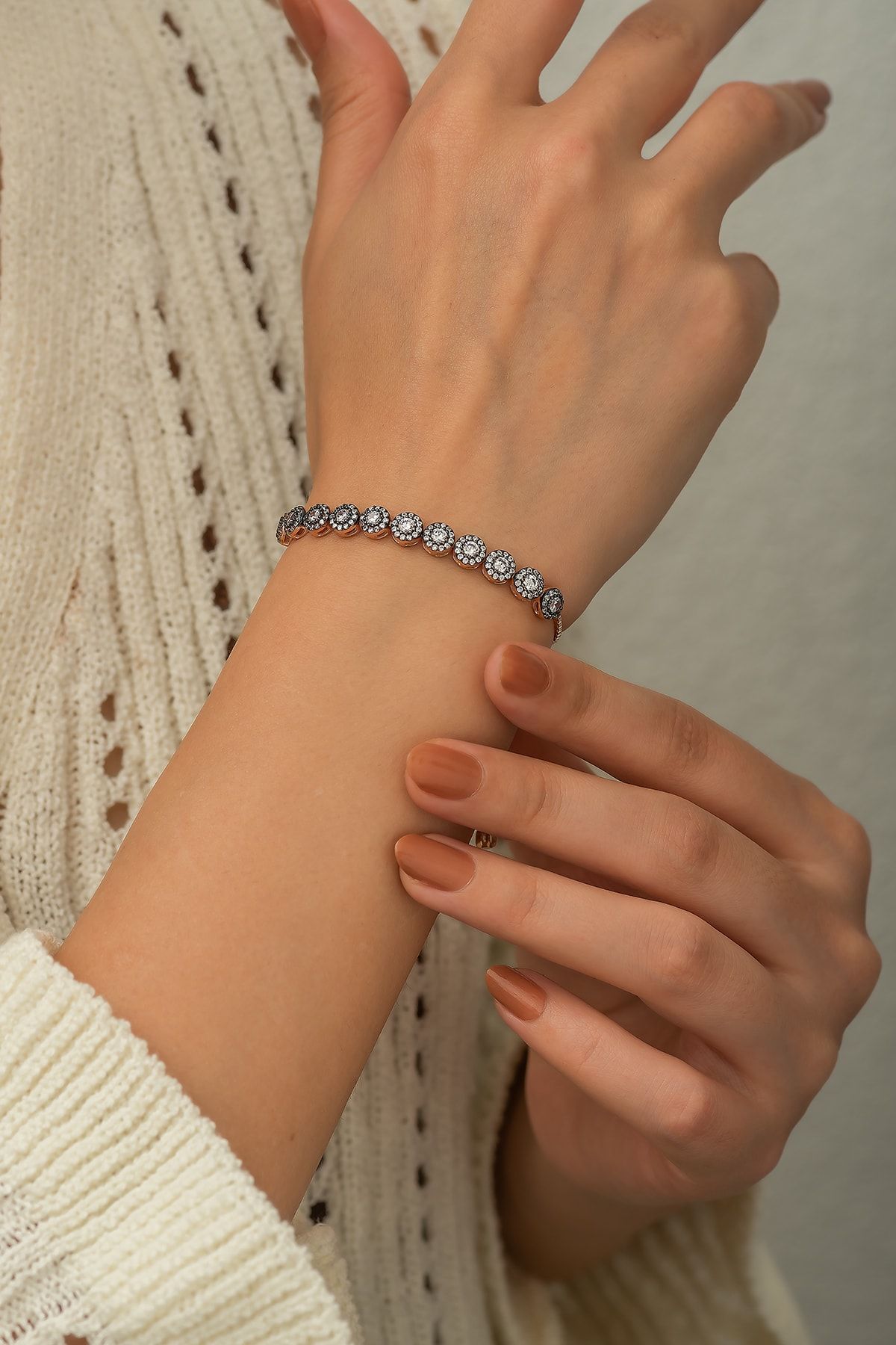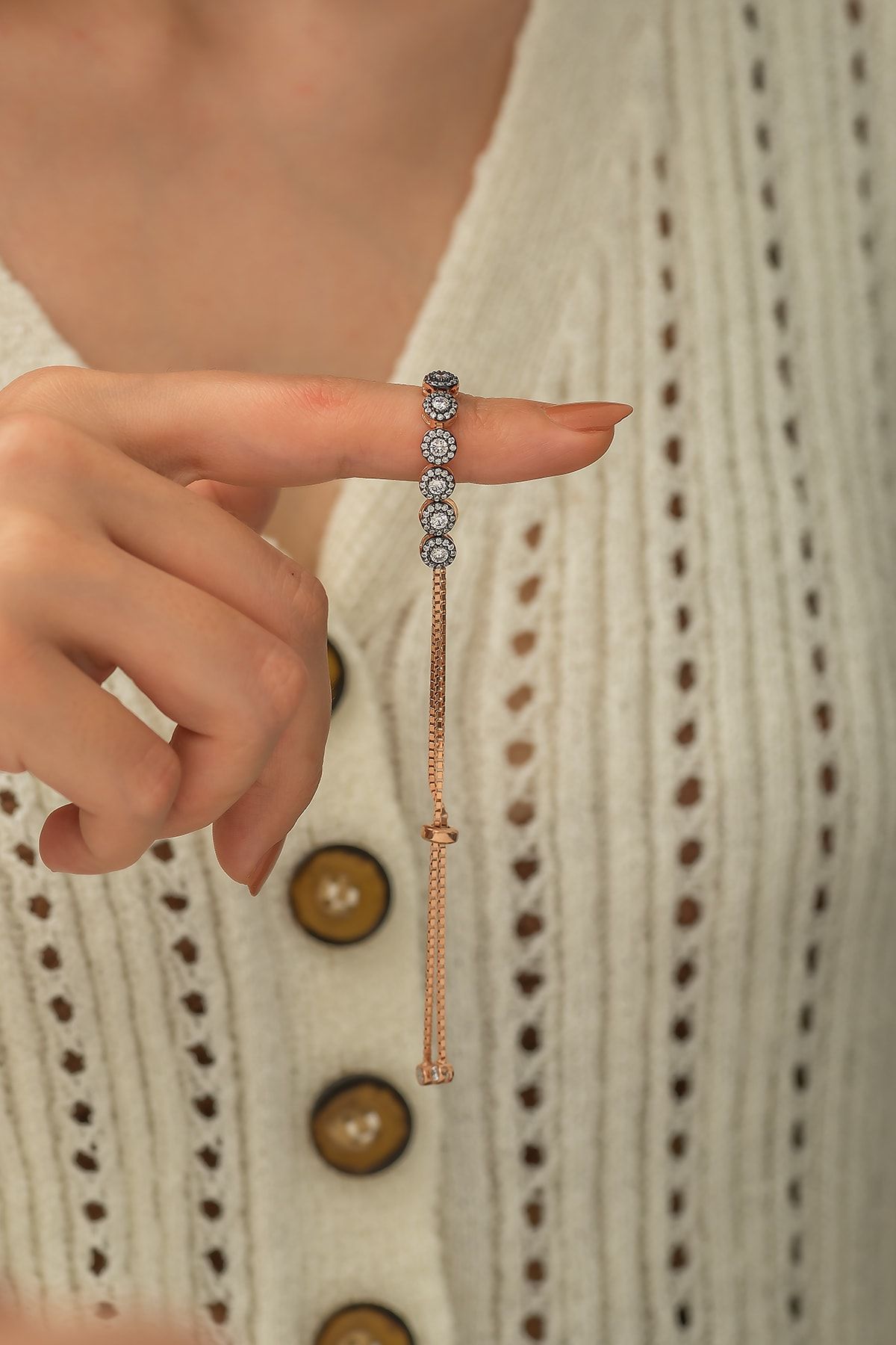 Siyah Kalemli Asansör Bileklik Nano Zirkon Taşlı Rose Altın Kaplama 925 Ayar Gümüş UVPS200213Maden : 925 Ayar gümüş.Taş : Nano ZirkonKaplama : Rose AltınRenk : AltınBileklik uzunluğu : Ayarlanabilir. Ürün ağırlığı : 6 Gr (+-).Teslimat : Ürün takı kutusunda gönderilecektir.