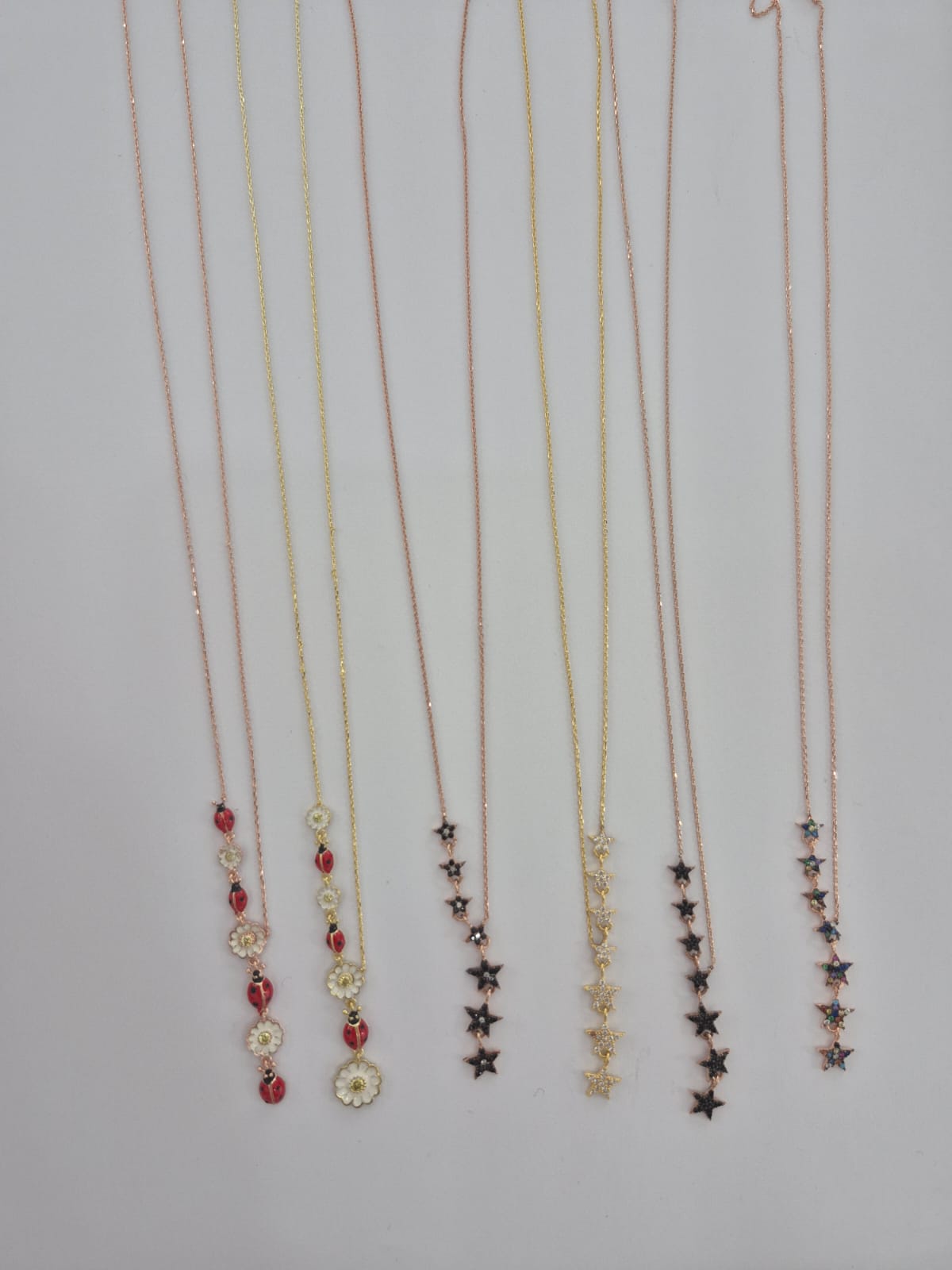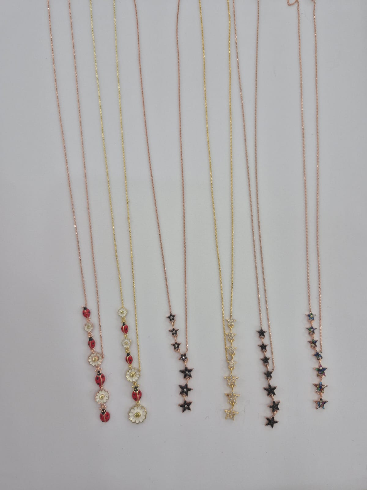 Kayan Yıldızlar Kolye - Siyah Nano Zirkon Taşlı Rose Gold Kaplama 925 Ayar Gümüş Kolye UVPS100479 Maden: 925 Ayar gümüş. Taş : Nano Zirkon Kaplama : Rose Altın Renk: Rose Altın Zincir uzunluğu43 cm. Ürün ağırlığı: 2,0 Gr (+-). Gümüş ve değerli taşlar nedeniyle belirtilen ortalama ürün ağırlığında ± %10 sapma olabilmektedir Teslimat: Papatya Silver tarafından Ürün ahşap hediye kutusunda gönderilecektir.